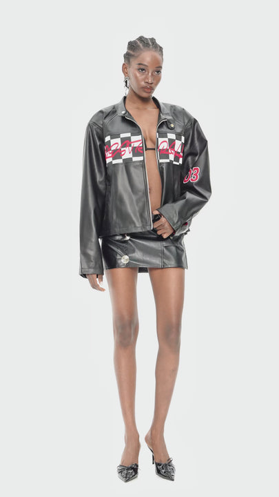 Custodio Grid Print Leather Jacket