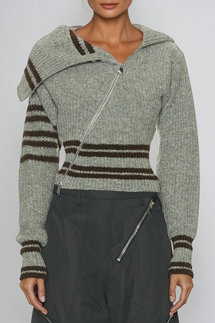 The Deianira Zipper Asymmetric Knit Top blends modern design with expert tailoring, featuring an asymmetric silhouette enhanced by a functional zipper detail. Crafted from a high-quality knit fabric, it offers both comfort and structure, making it ideal for layering or standalone wear. This top effortlessly elevates any wardrobe, providing a sophisticated edge with its unique cut and precise finish. Perfect for those seeking a contemporary yet refined style statement.
