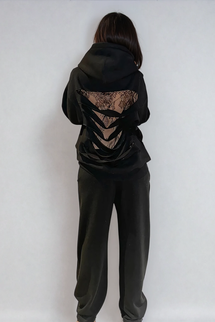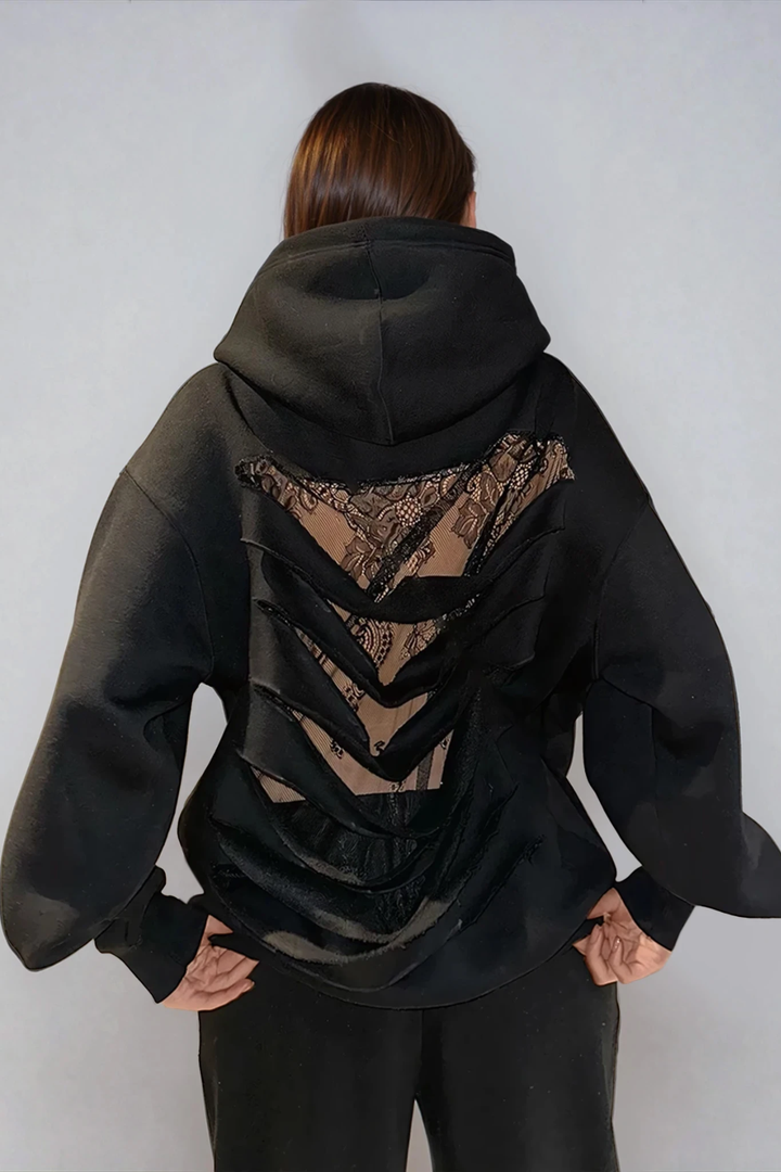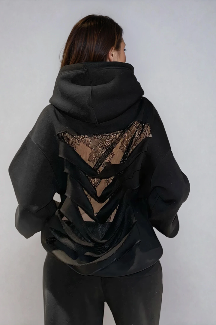 Elevate your layering game with the Divna Lace Hooded Top in Black. This sophisticated piece combines delicate lace detailing with a practical hooded silhouette, offering versatile styling for both casual and refined looks. The breathable lace construction provides subtle texture while maintaining an elegant aesthetic, making it an ideal choice for transitional seasons. Perfect for pairing with fitted basics or layering under structured pieces, this top delivers understated sophistication with contemporary edge.