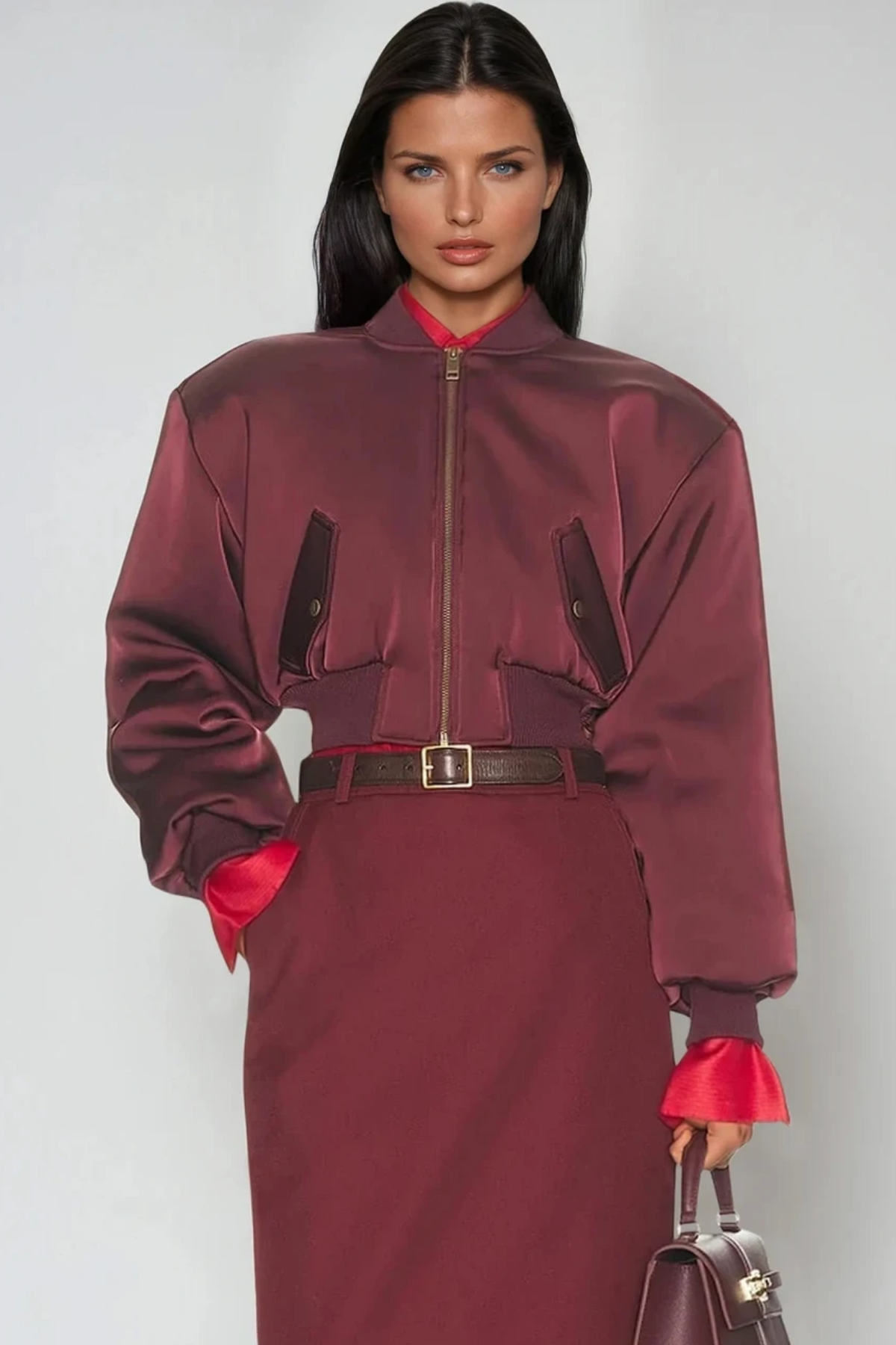 The Doireann Crop Satin Jacket delivers refined sophistication in a contemporary silhouette. Crafted from lustrous satin, this cropped style flatters the frame while offering a luxurious drape that elevates any ensemble. The structured fit provides polished definition, making it equally suited for layering over dresses or pairing with tailored trousers. A versatile piece that transitions seamlessly from evening occasions to elevated casual wear, the Doireann combines timeless elegance with modern proportions.