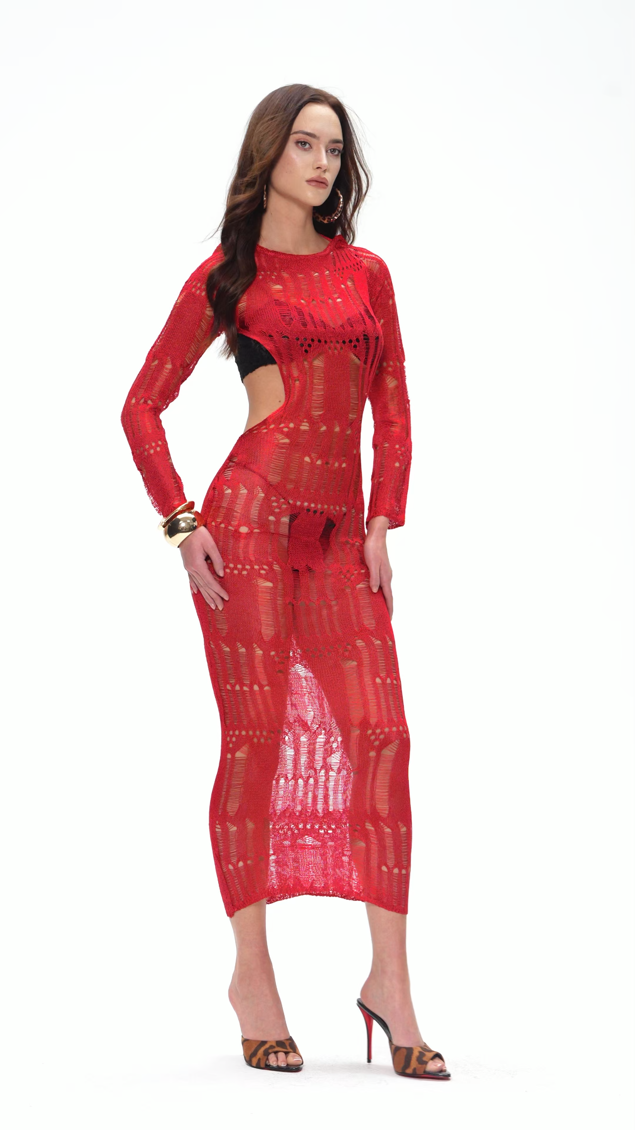 The Dzana Backless Ripped Maxi Dress In Red combines contemporary edge with sophisticated silhouette. This statement piece features a daring backless design that showcases your shoulders and upper back, while strategically placed rips add textural interest and modern attitude. The flowing maxi length provides elegant coverage below, creating a striking contrast between bold cutouts and refined proportions. Perfect for evening events, upscale casual outings, or anyone seeking to make a confident fashion statement. The design balances provocative styling with wearable elegance, making it a versatile addition to your wardrobe.