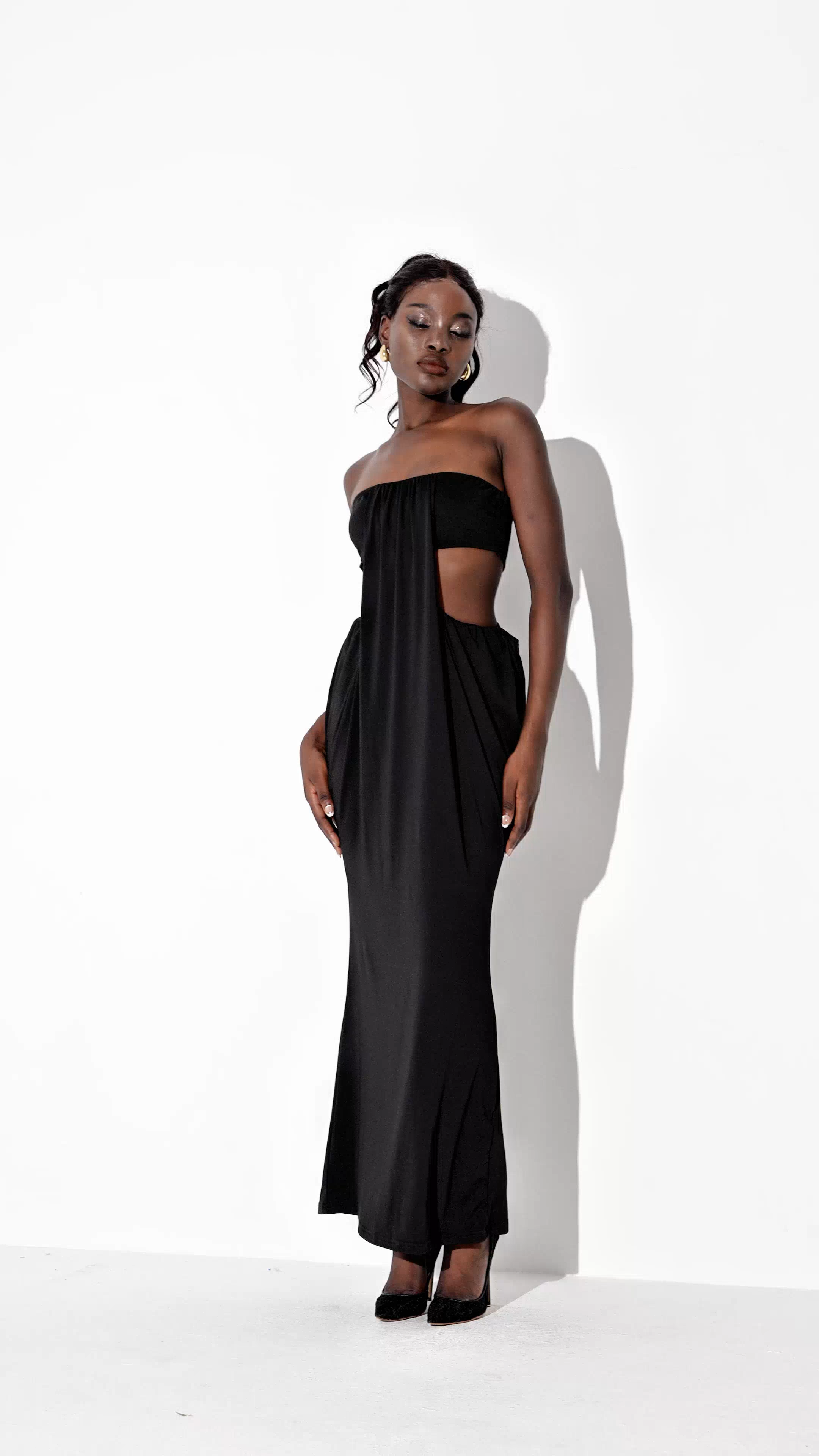 The Ebrahim Cutout Ruch Maxi Dress combines sophisticated design with contemporary flair. Featuring strategically placed cutouts and elegant ruching, this maxi dress enhances your silhouette with a flattering, tailored fit. Crafted for versatility and comfort, it transitions seamlessly from day events to evening occasions, offering a refined yet modern look that stands out with subtle detail and expert construction.
