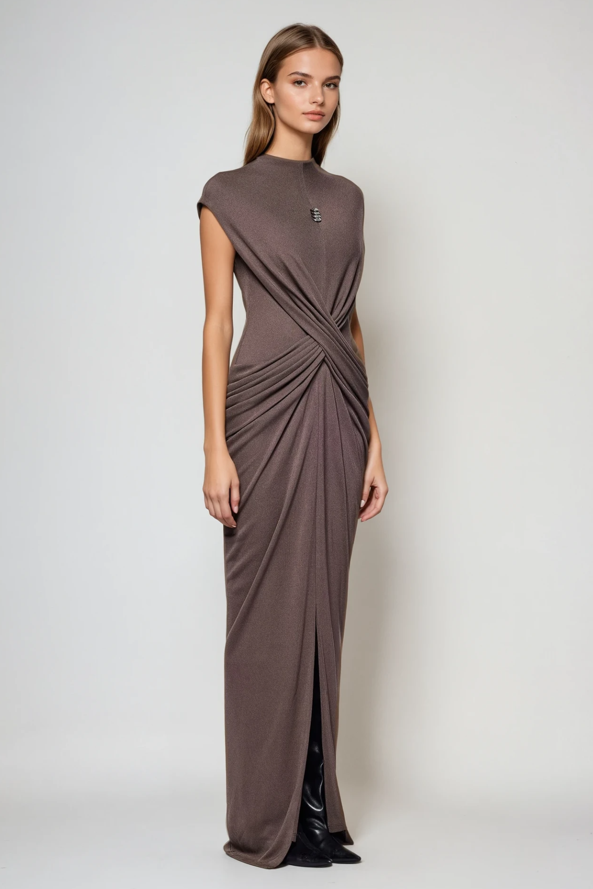 The Fedelma Ruch Split Maxi Dress combines sophisticated tailoring with contemporary design. Featuring strategic ruching that flatters the silhouette and a dramatic side split for effortless movement, this maxi dress transitions seamlessly from day to evening. The refined construction and flowing fabric create an elegant drape, while the split detail adds modern edge. Perfect for those seeking a versatile piece that balances polish with understated glamour.