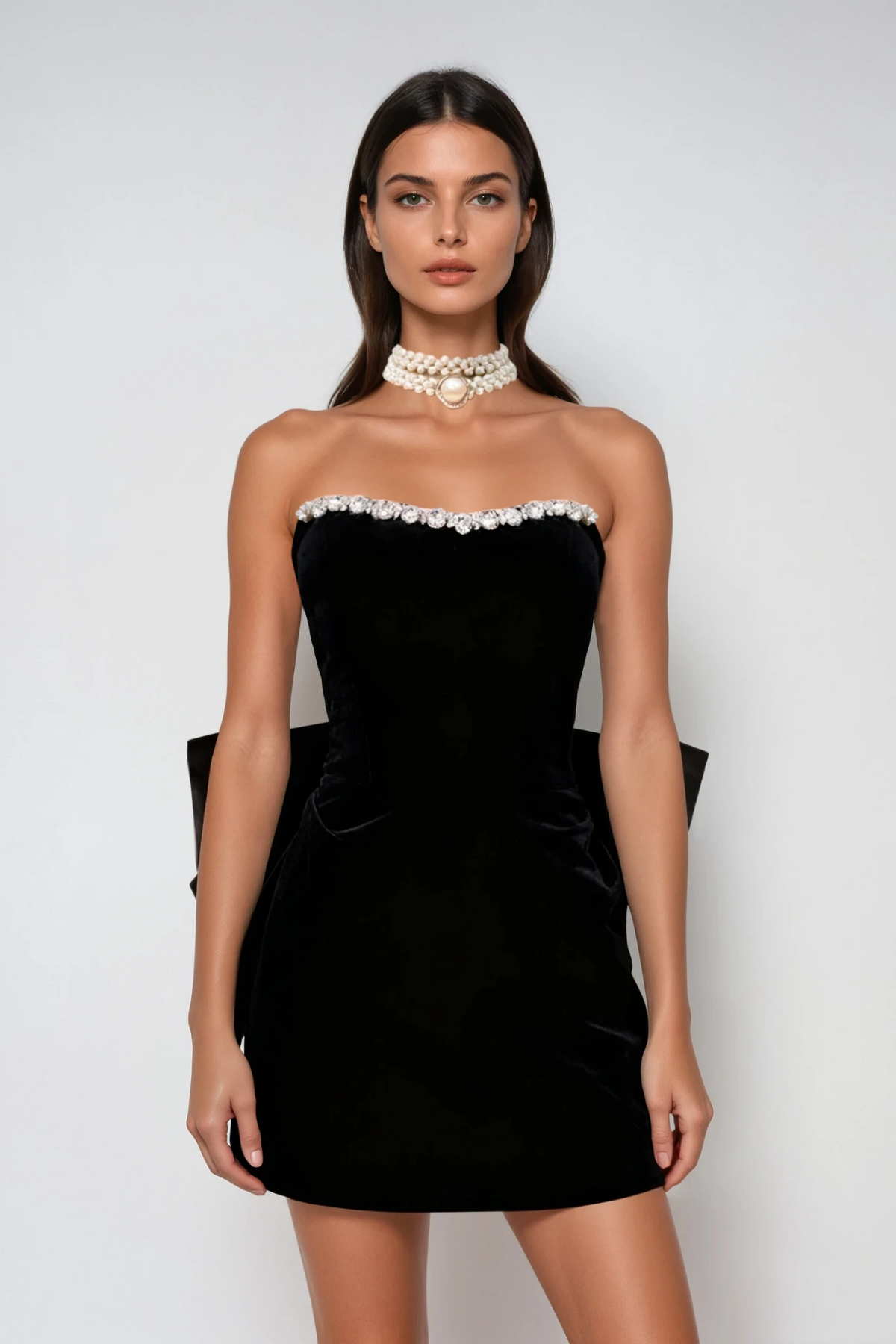 Dorcas Strapless Crystal Bow Mini Dress