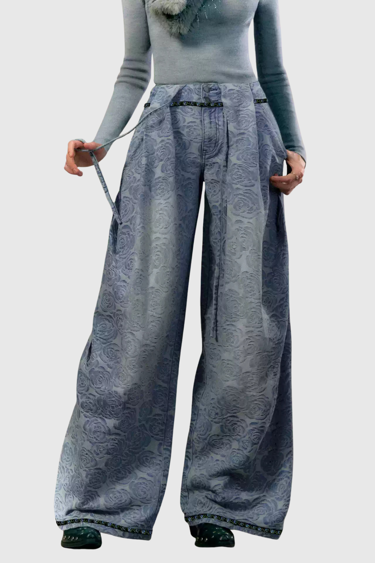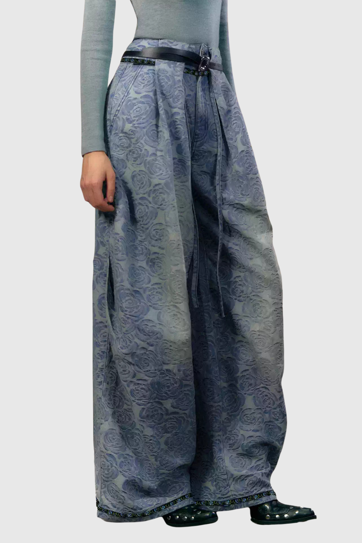 Chlodulf's deconstructed floral jeans merge contemporary design with botanical artistry. Featuring strategically placed floral embroidery and intentional distressing, these jeans balance structure with avant-garde aesthetics. The thoughtful deconstruction creates visual interest while maintaining wearability, making them ideal for those seeking statement pieces that transcend conventional denim. Premium construction ensures durability despite the artistic design elements.