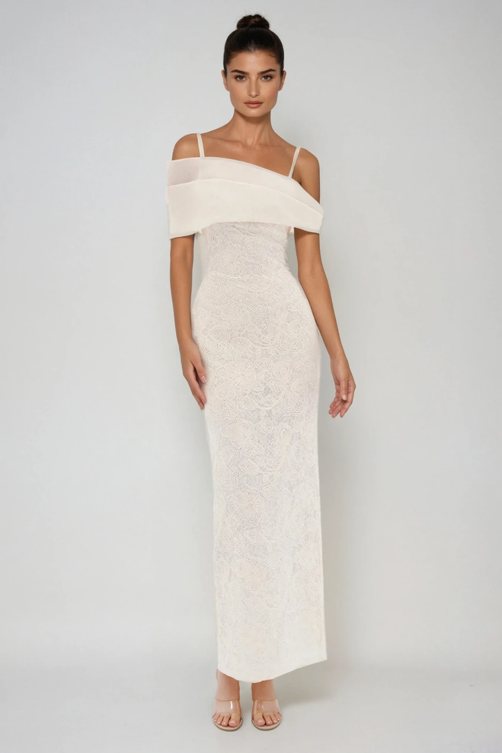The Denzel Off Shoulder Lace Maxi Dress combines elegant design with sophisticated craftsmanship. Featuring delicate lace detailing and an off-shoulder neckline, this maxi dress offers a flattering silhouette that highlights the shoulders and collarbone. Its flowing fabric ensures comfort and graceful movement, making it ideal for formal events or special occasions where refined style is essential.