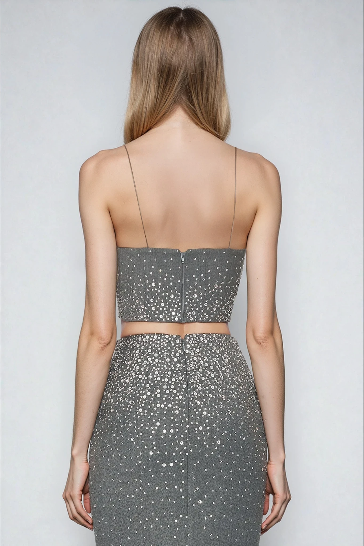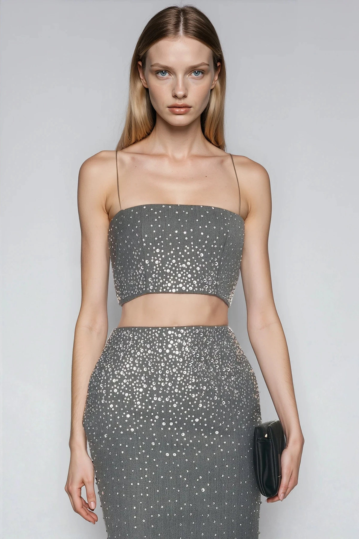 Domnius Spaghetti Rhinestone Top pairs delicate spaghetti straps with luxurious rhinestone embellishments for an effortlessly chic silhouette. The lightweight construction ensures breathability and comfort, while the strategically placed rhinestones create a refined sparkle that commands attention. This versatile piece works equally well layered under jackets or worn as a standalone statement piece. Perfect for elevating both casual and dressy occasions with understated elegance and contemporary flair.