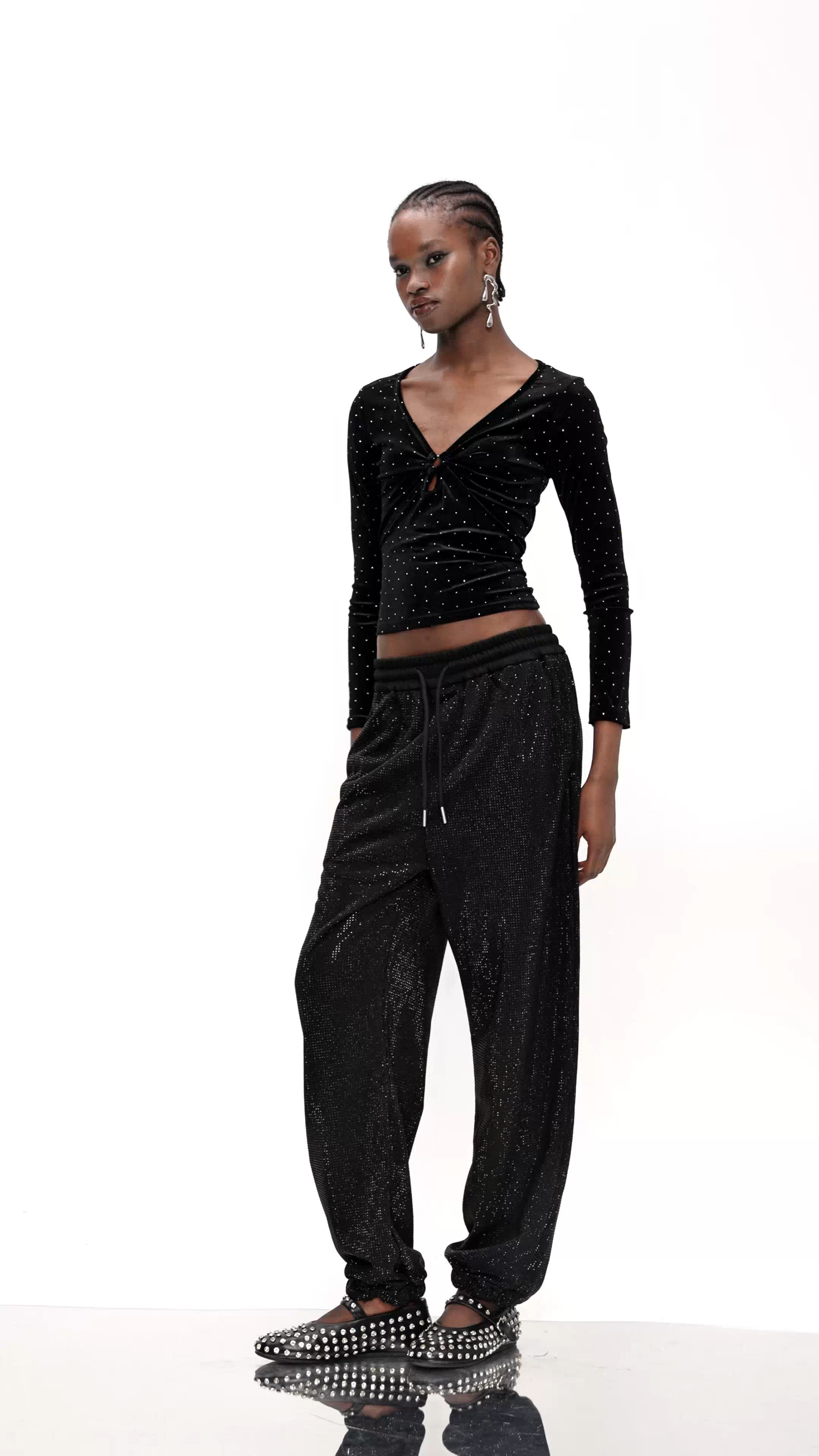 Elevate your evening wardrobe with the Elara Rhinestone Velvet Top, a sophisticated piece that seamlessly blends luxury textures with refined glamour. Crafted from sumptuous velvet, this top features meticulously placed rhinestone embellishments that catch light beautifully, creating an understated yet striking visual impact. The expert construction ensures the stones remain secure through wear, while the velvet's soft drape flatters the silhouette. Perfect for special occasions, upscale dinners, or when you want to make a polished statement, this top pairs effortlessly with tailored trousers or evening skirts. A timeless investment piece that transcends seasonal trends.