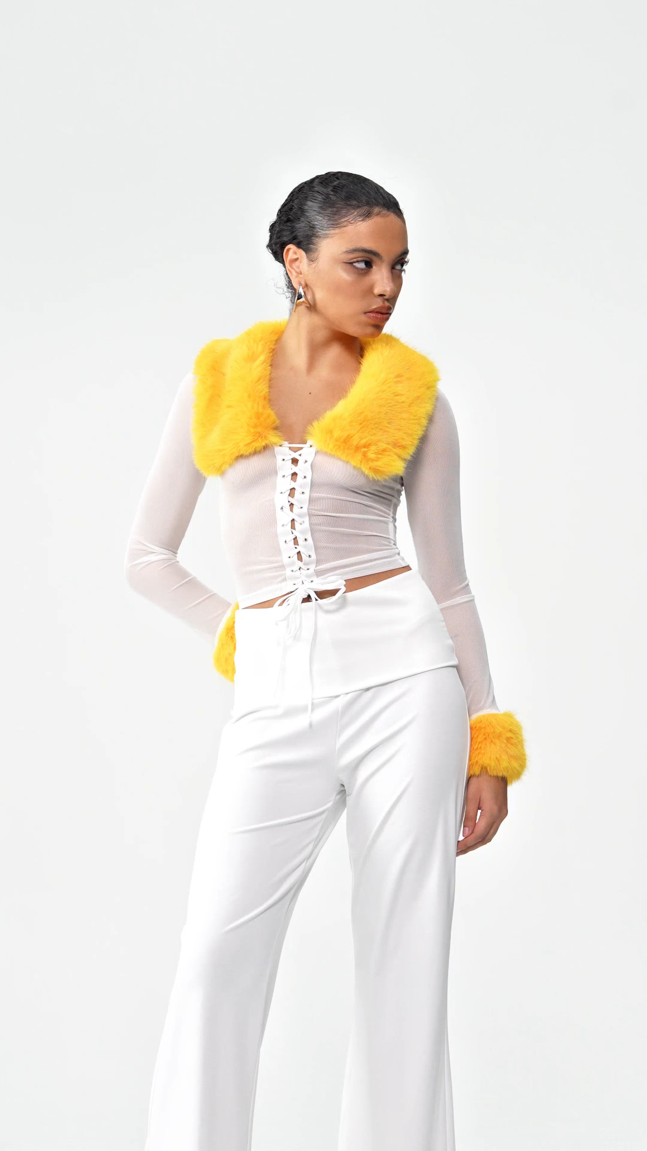 Elena Faux Fur Lace Up Top