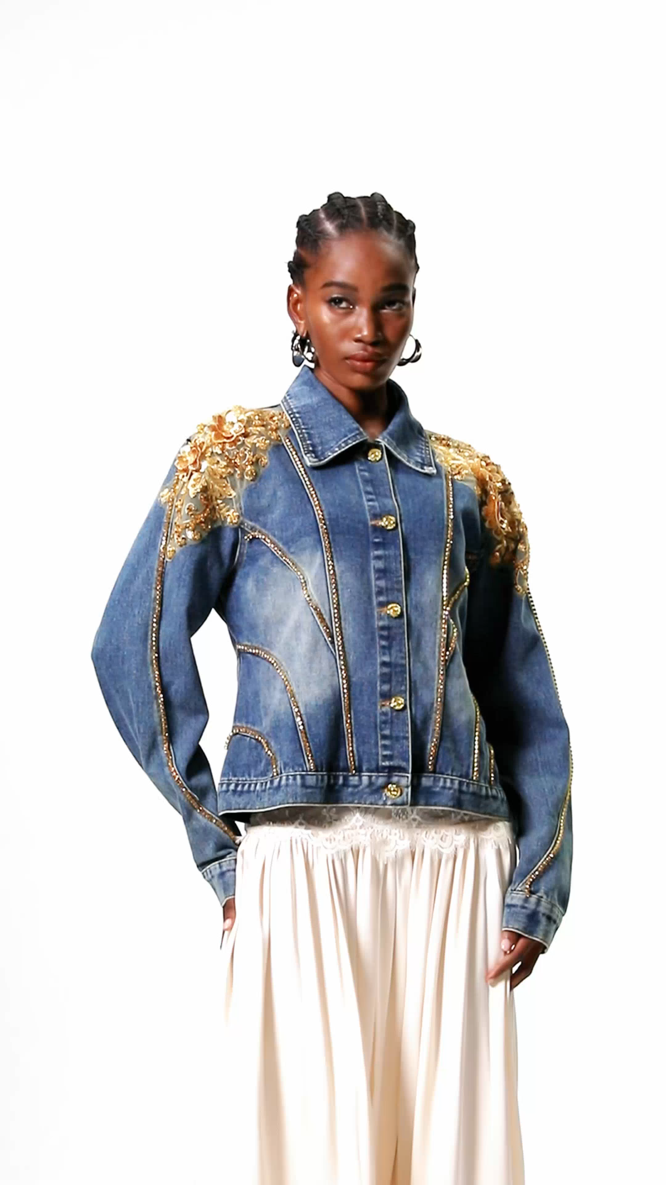 The Chou Embroidered Sequin Denim Jacket combines durable denim with intricate embroidery and subtle sequin accents, offering a refined balance of toughness and elegance. Its detailed craftsmanship enhances any outfit, providing a sophisticated yet edgy statement piece suitable for expert-level fashion curation. Durable and stylish, this jacket elevates your wardrobe with textured embellishments that catch the light without overwhelming the classic denim structure.