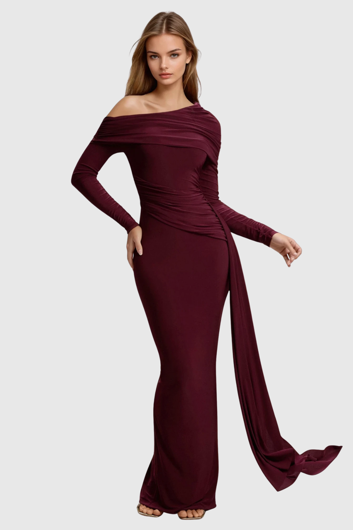 The Domingos One Shoulder Bodycon Ruch Maxi Dress combines architectural design with refined elegance. The asymmetrical one-shoulder silhouette creates a striking focal point, while strategic ruching through the bodice and skirt provides dimension and flattering contouring. The bodycon fit hugs your curves with precision, flowing into a floor-length maxi that moves with understated sophistication. Perfect for evening events, cocktail parties, or upscale occasions where you want to make a memorable impression with polished, contemporary style.