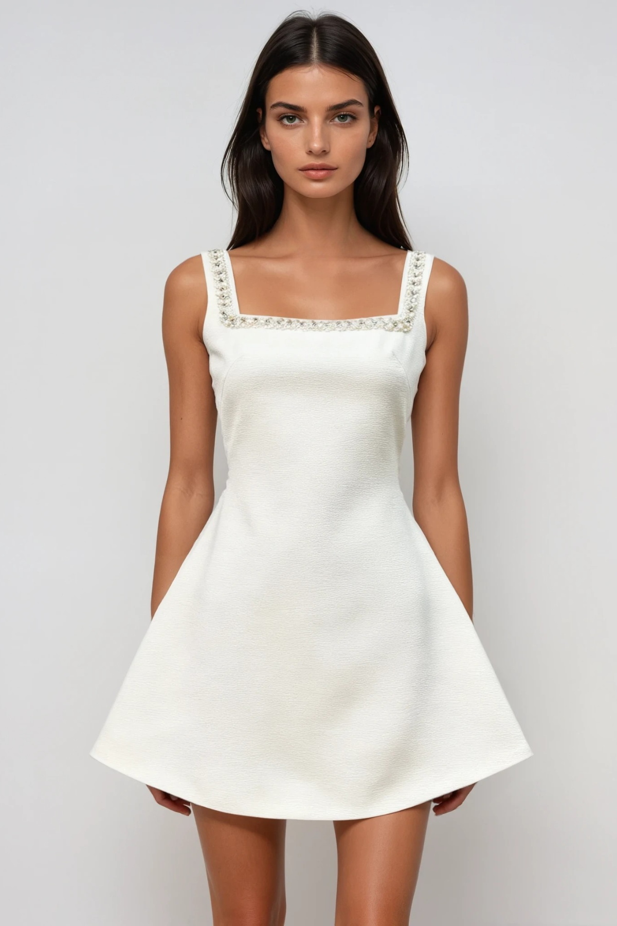 Elevate your evening repertoire with this sophisticated sleeveless mini dress, defined by an exquisite bow detail and shimmering crystal embellishments. The streamlined silhouette offers refined elegance, while strategic crystal placement catches light with every movement, creating an understated yet captivating presence. Perfect for cocktail events, upscale gatherings, or nights demanding a touch of glamour, this piece balances minimalist design with luxurious detailing. The sleeveless cut provides versatility for layering or standalone wear, making it an essential addition to any discerning wardrobe.