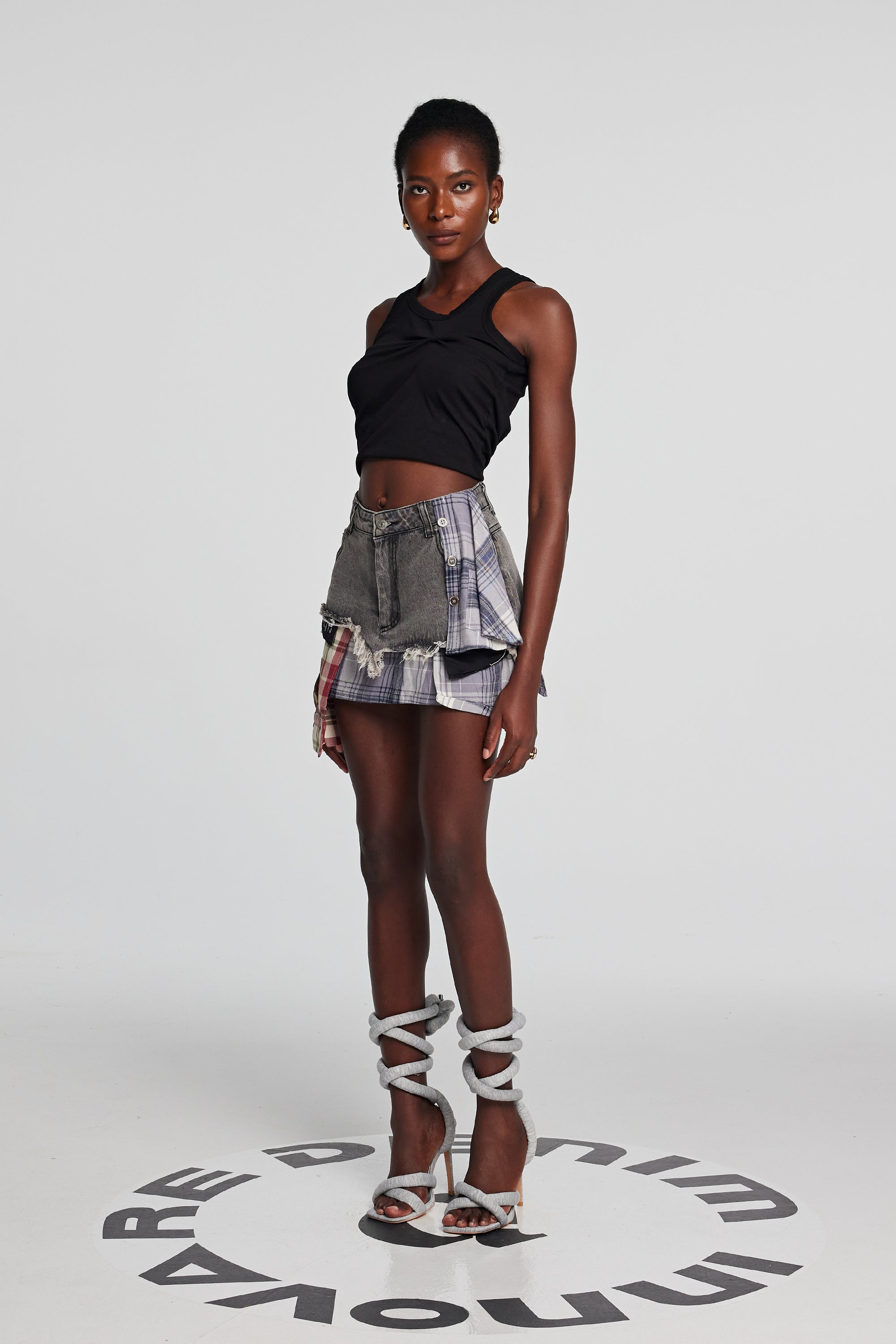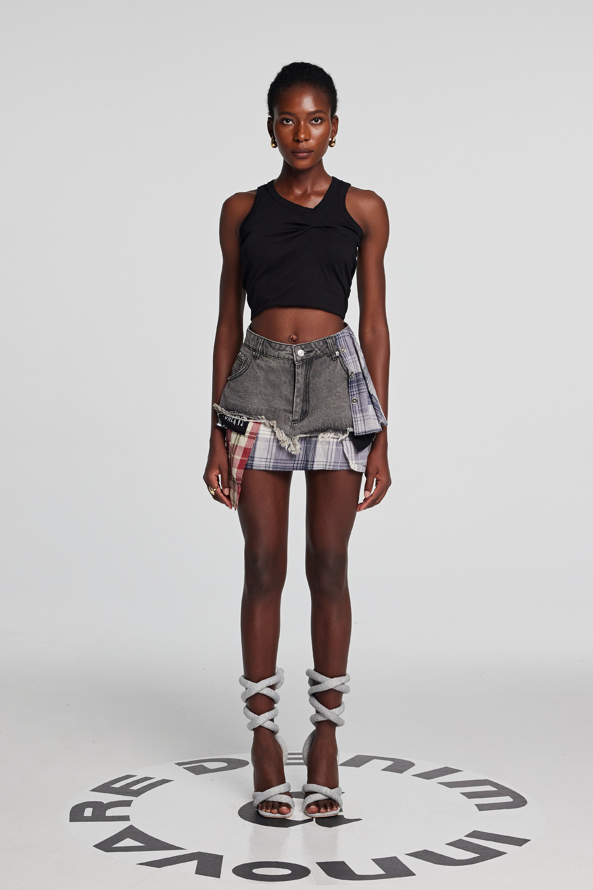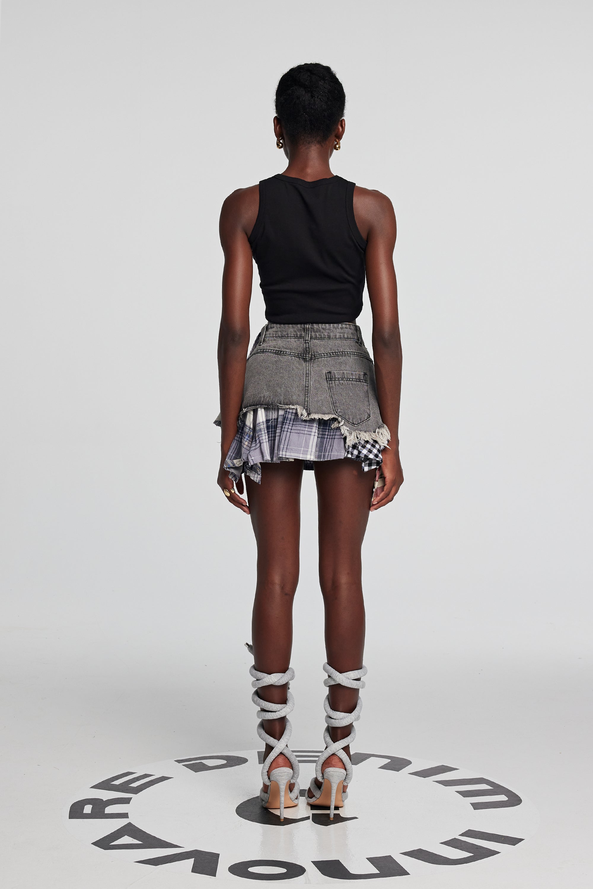 Kenna Grid Deconstruct Patchwork Mini Skirt In Black