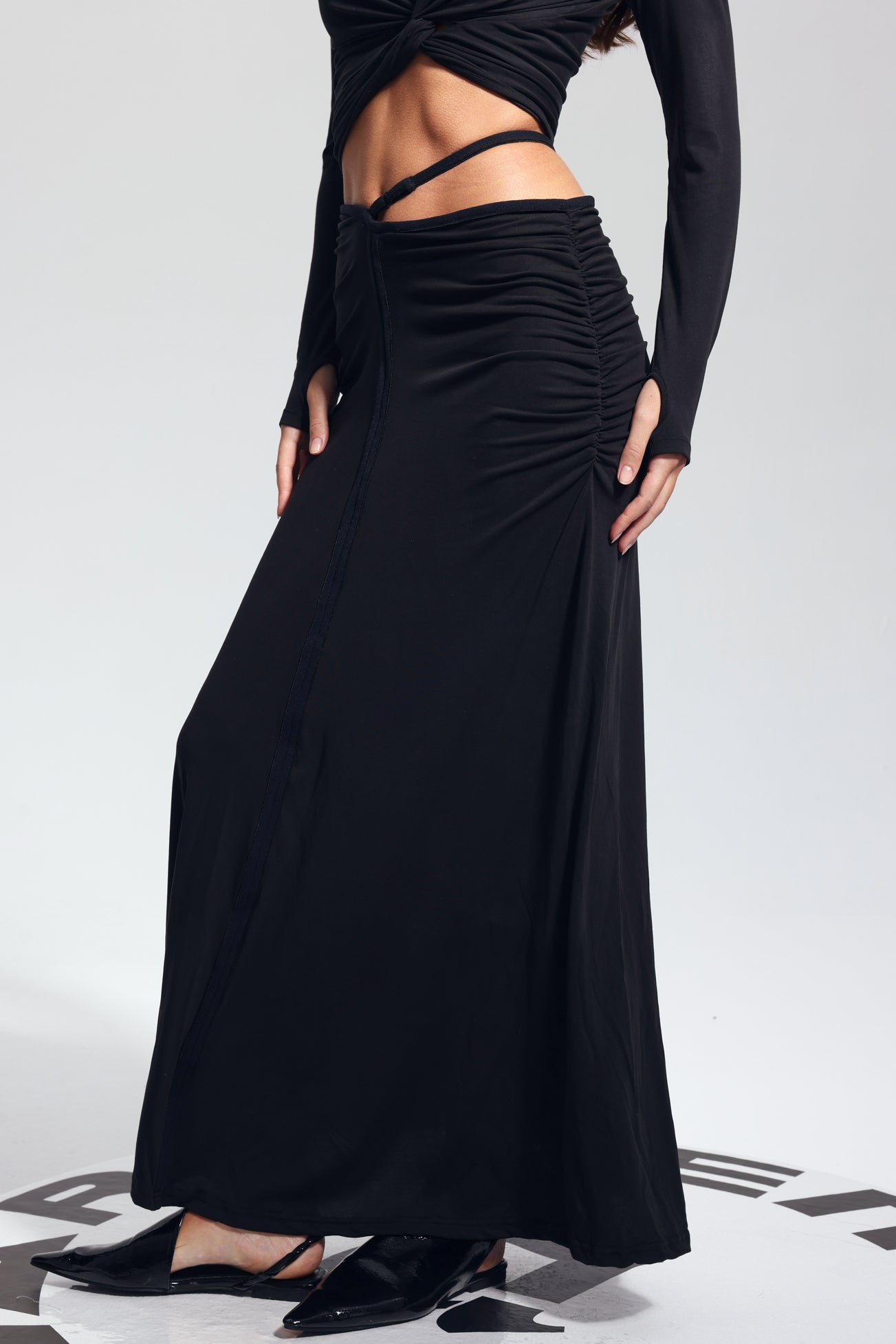 This Padget Ruch Cutout Bodycon Skirt in Black is a must-have for any fashion-forward wardrobe. Featuring a figure-flattering bodycon silhouette, ruch detailing, and edgy cutouts, this skirt is perfect for adding a touch of style and sophistication to any outfit. Made from high-quality materials, it offers both comfort and durability. Elevate your style game with this chic and versatile skirt.