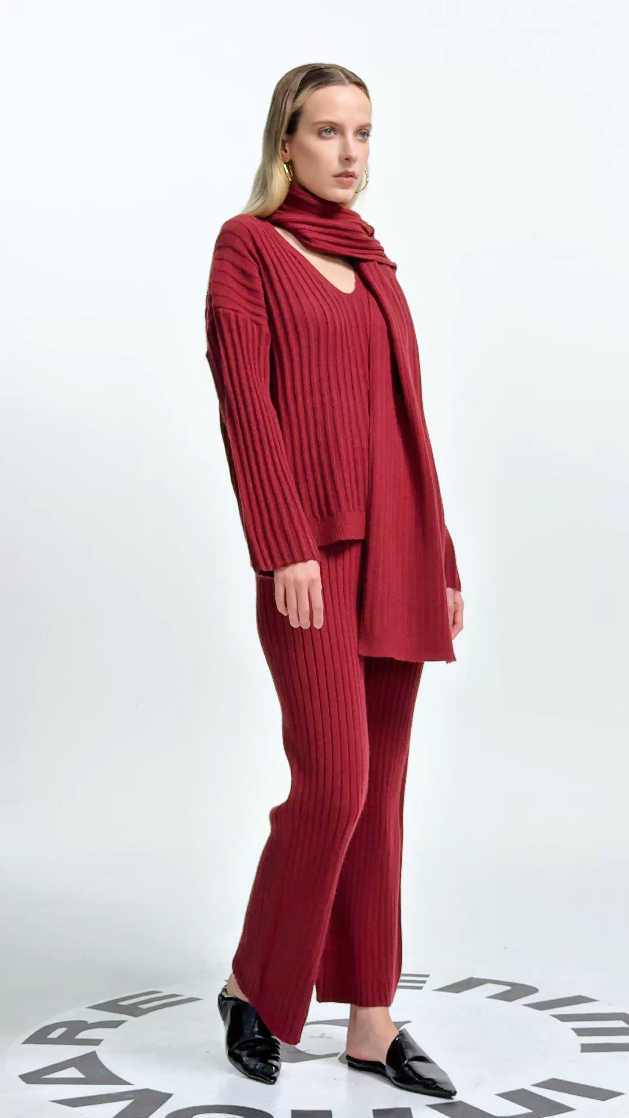 Alessia Shawl Lace Up Knit Pants Set In Red