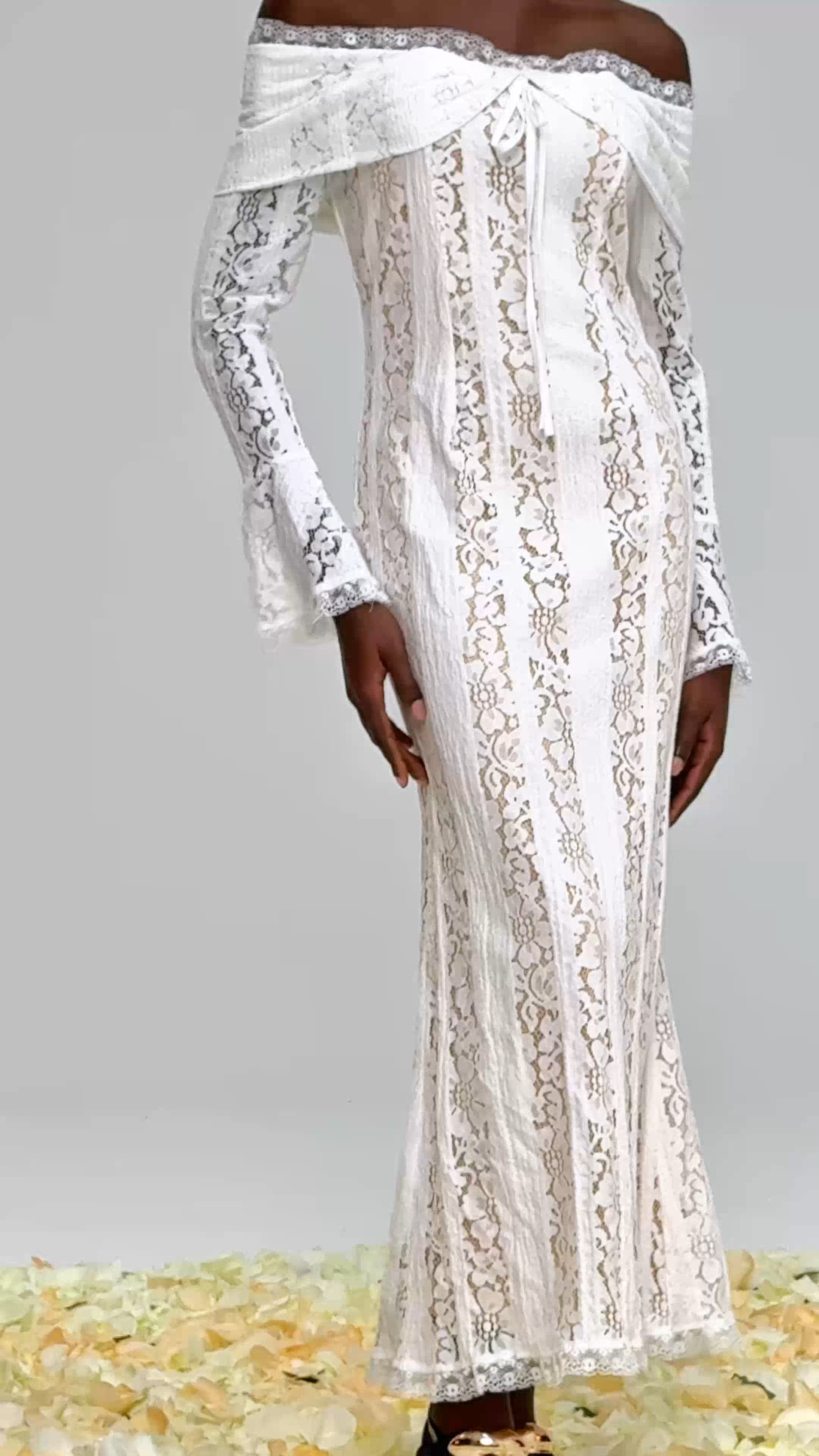 Alladitta Lace Off Shoulder Cutout Maxi Dress