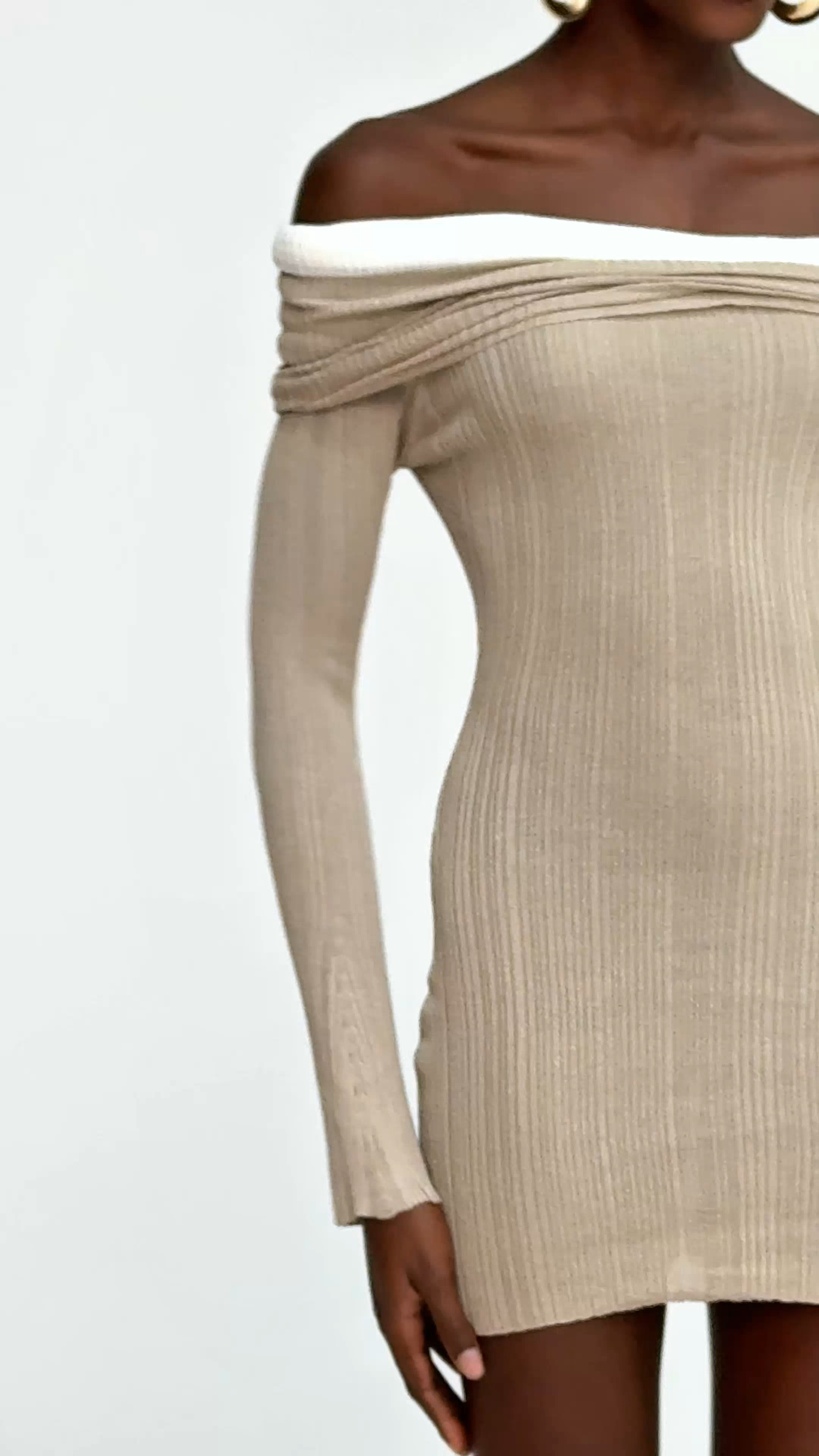 This Althea Off Shoulder Hayley Knit Mini Dress is a stylish and versatile addition to any wardrobe. With its off-shoulder design, it adds a touch of elegance while the knit material provides comfort and a flattering silhouette. Perfect for any occasion, this dress is sure to make a statement.