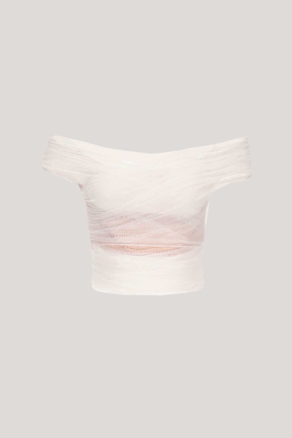 Elevate your wardrobe with the Alusia Off Shoulder Ruch Mesh Top in White. This sophisticated piece features a flattering off-shoulder neckline that frames the collarbone beautifully, while strategic ruching creates dimension and visual interest. The delicate mesh fabric offers a modern, sheer aesthetic that works seamlessly layered or worn as a statement piece. Perfect for transitional styling, this versatile top pairs effortlessly with tailored trousers, denim, or skirts for occasions ranging from casual outings to evening events. The white colorway ensures timeless appeal and easy coordination with your existing collection.
