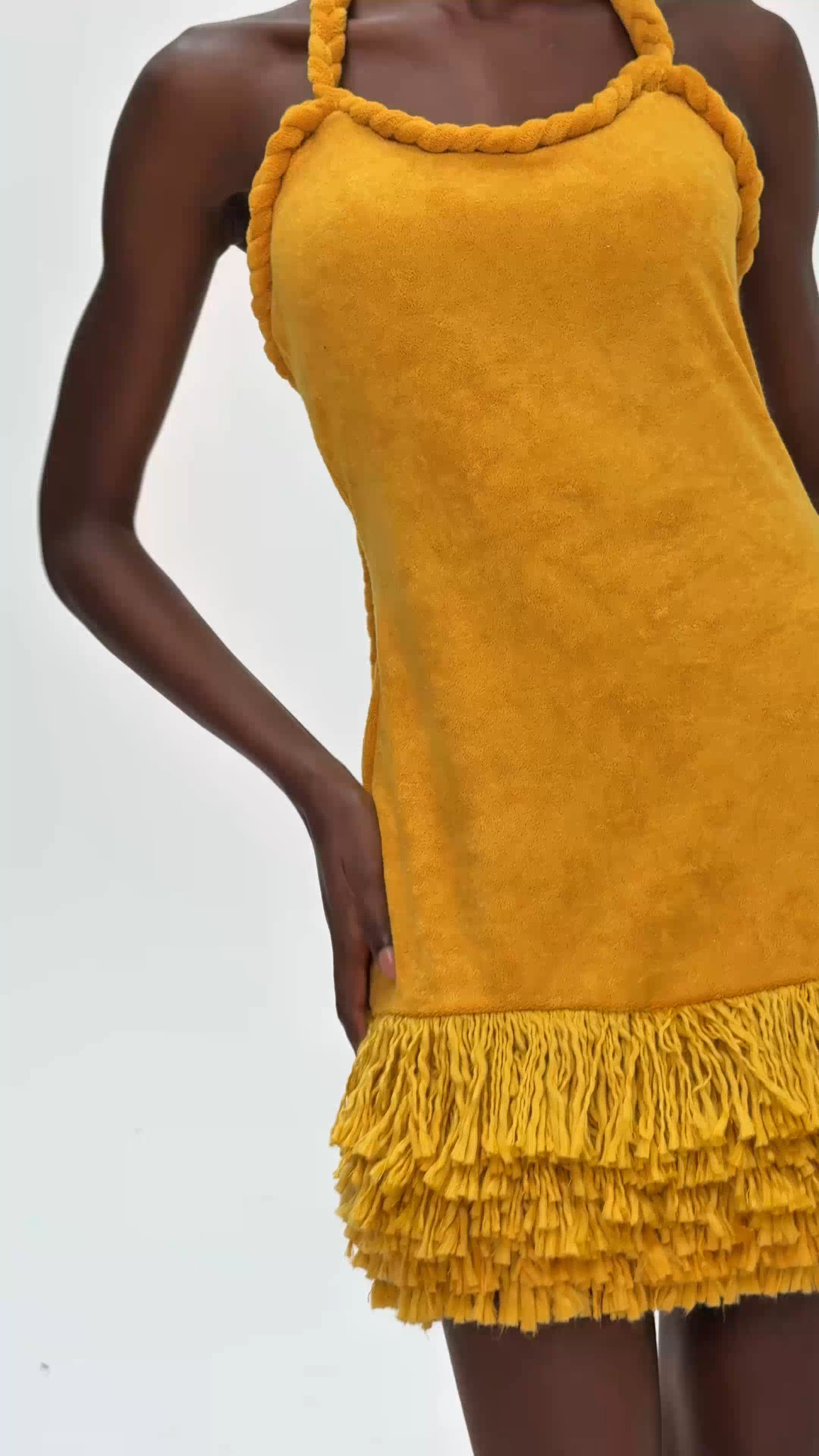The Alvis Bodycon Fringe Twist Knit Mini Dress in Yellow features a flattering bodycon fit with a twist knit design and fringe detailing. Made with high-quality materials and designed for both comfort and style, this dress is perfect for making a statement at any occasion. Get yours in sunny yellow today!