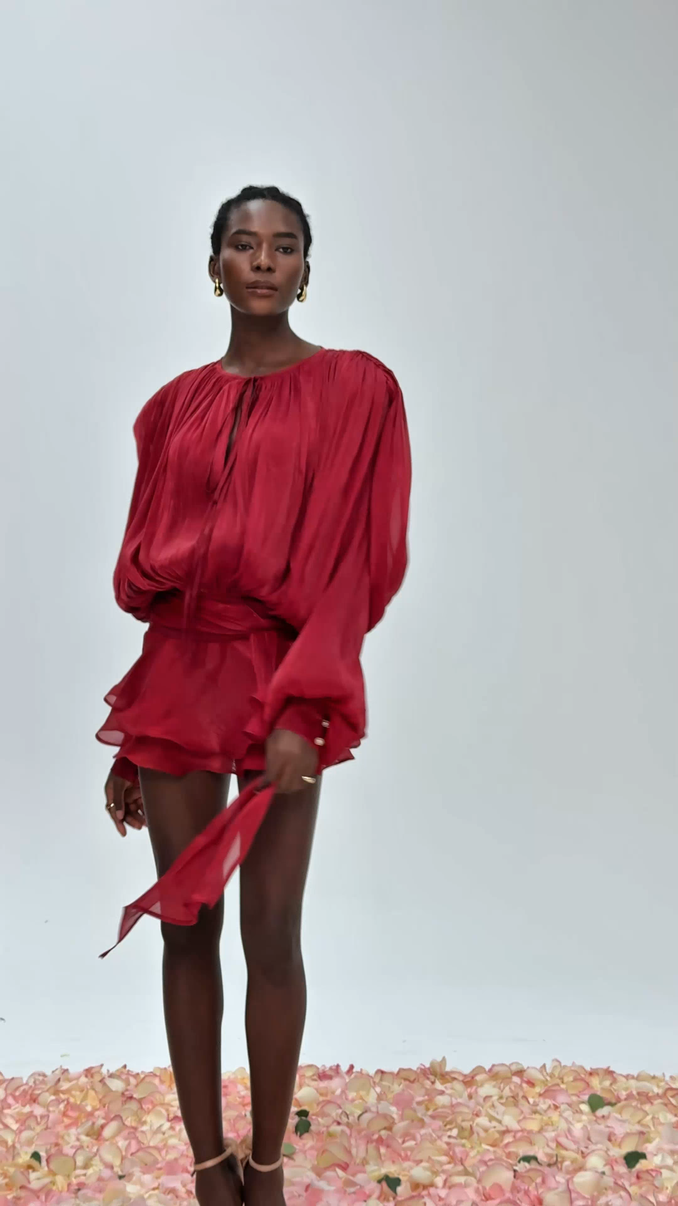 Aminah Balloon Sleeve Ruch Ruffle Mini Dress In Red