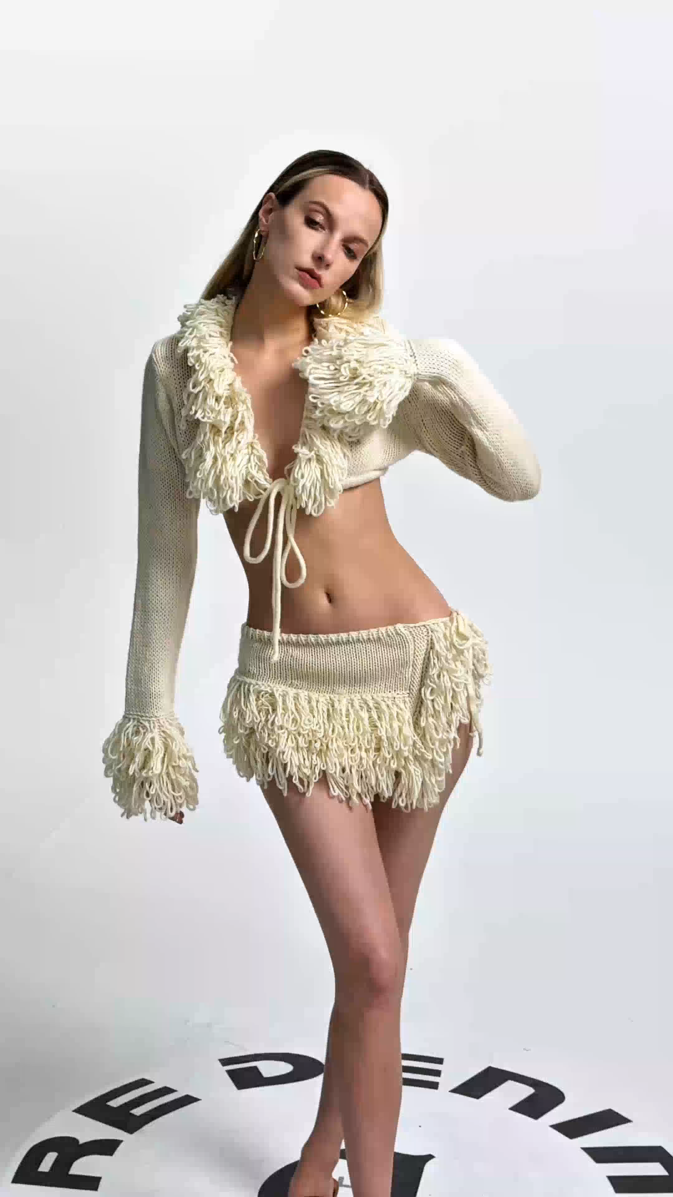 The Amphitrite Fringe Lace Up Knit Skirt Set is a stylish and versatile ensemble that will elevate your wardrobe. The intricate fringe lace-up details add a touch of elegance, while the comfortable knit material ensures all-day wearability. Perfect for any occasion, this set is a must-have for any fashion-forward individual.