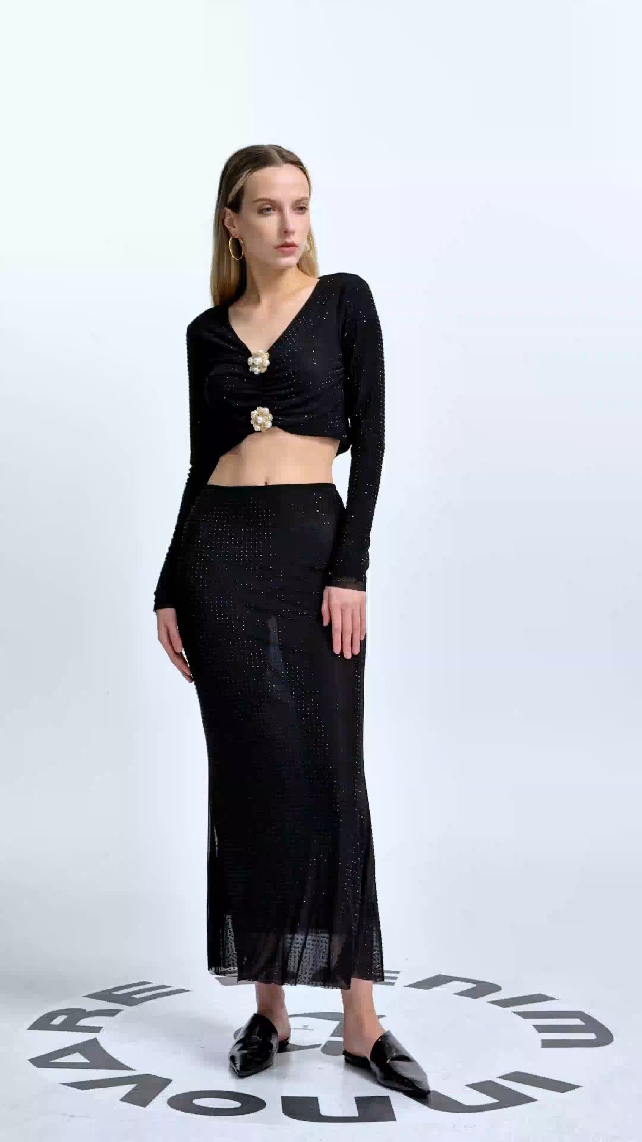 Anabia Dot Flower Ruffle Skirt Set