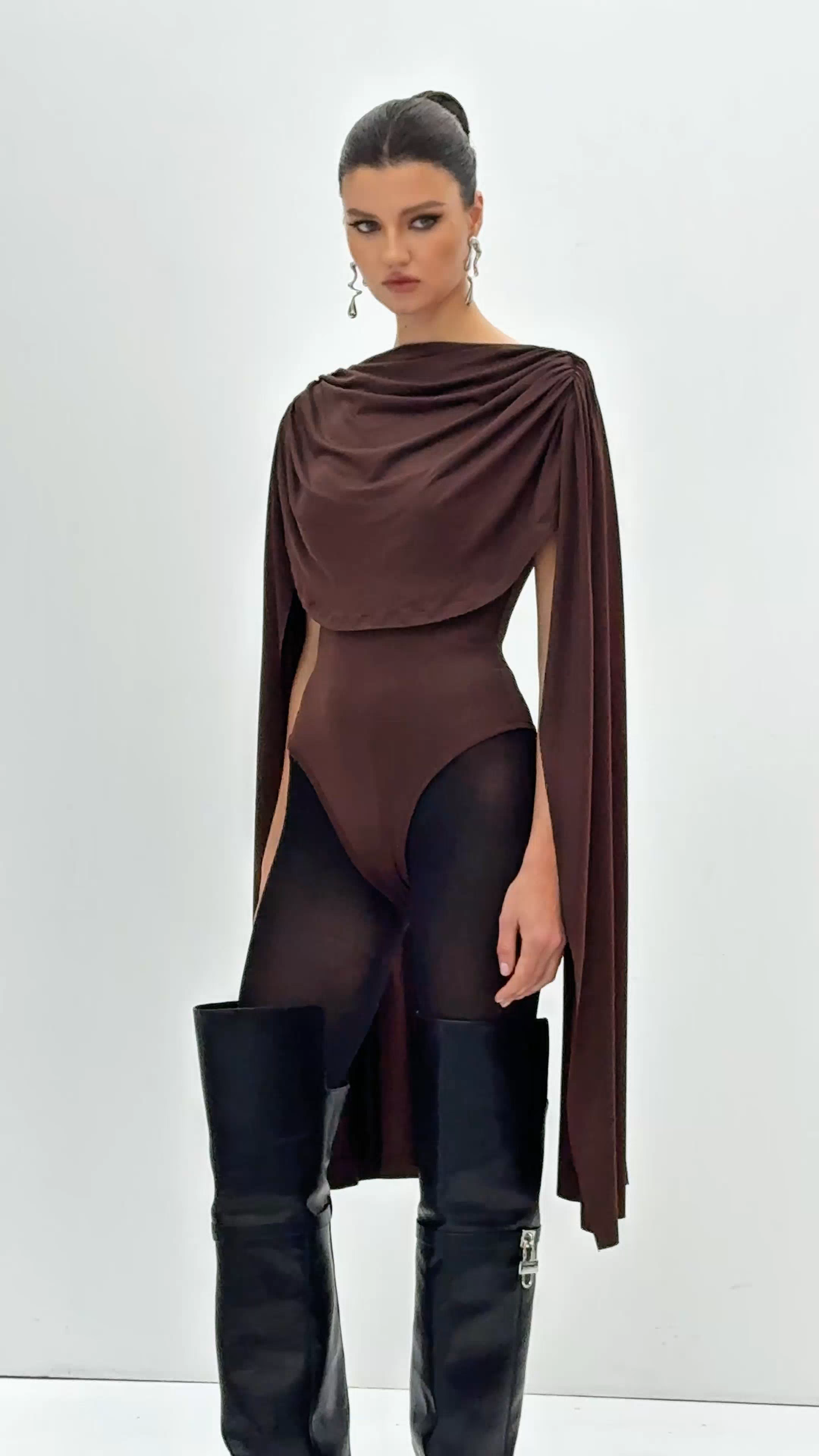 Aniela Cowl Neck Ruch Shawl Bodysuit