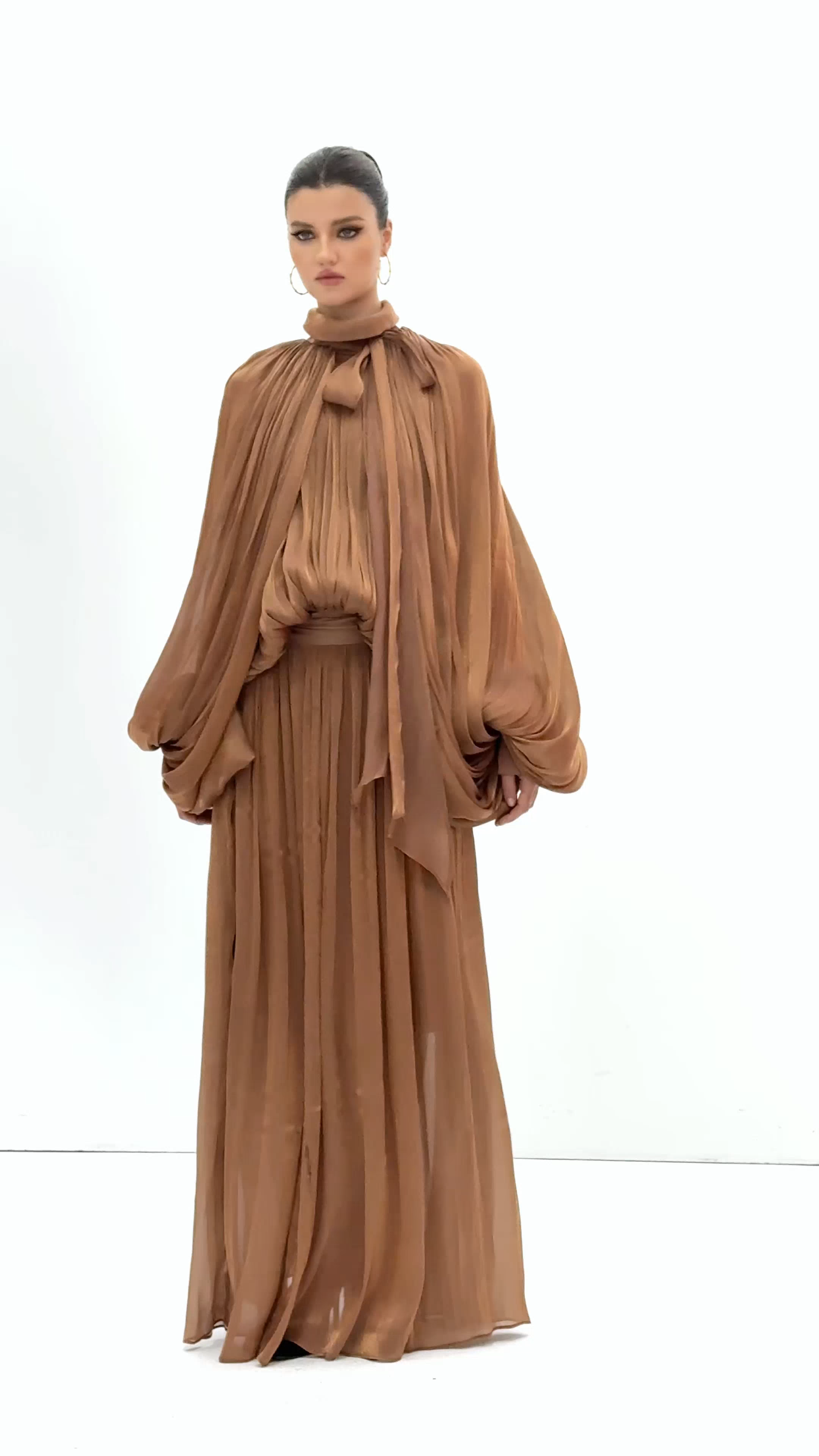 Expertly crafted with a ruched design and balloon sleeves, the Anima Lace Up Maxi Dress exudes effortless style. The lace-up detail adds a touch of sophistication, while the maxi length elongates the silhouette. Perfect for any occasion, this dress is a must-have for your wardrobe.