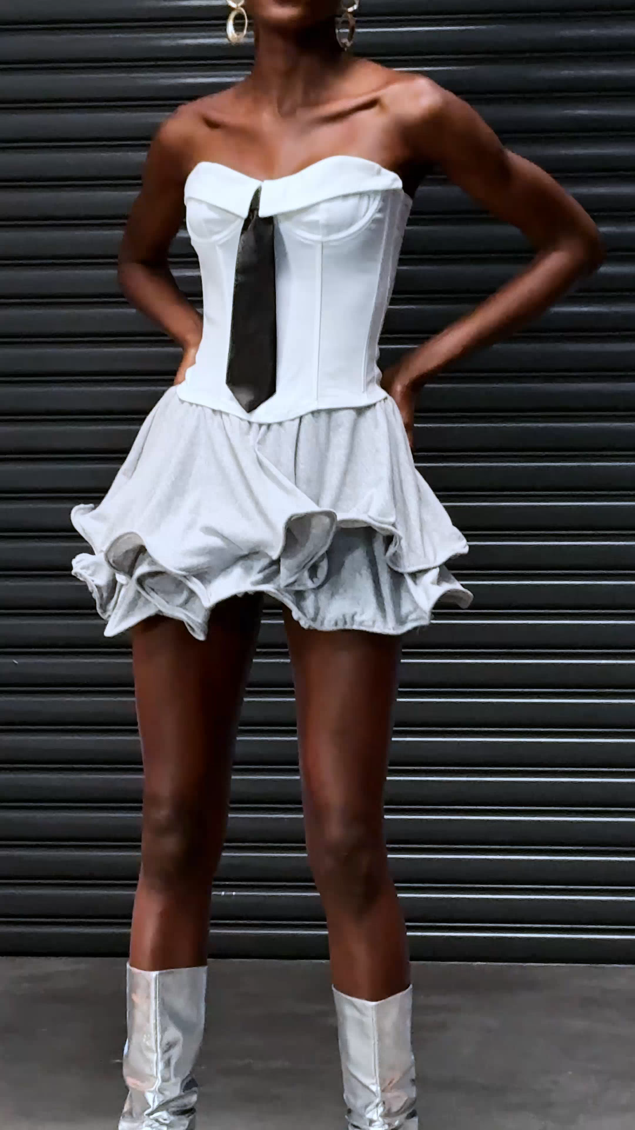 Elevate your style with the Anwen Strapless Corset Tie Top. This top features a flattering and secure corset tie design, perfect for any occasion. With its versatile strapless style, you can easily dress it up or down for a variety of looks. Add this top to your wardrobe for a chic and polished statement piece.