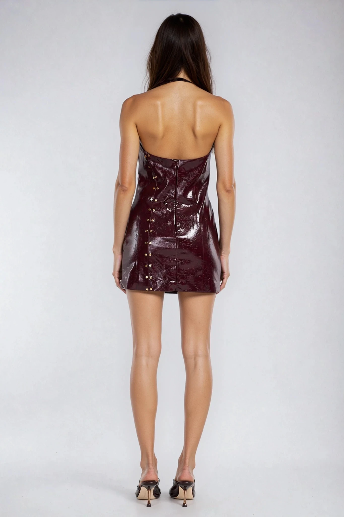The Ardin Halter Neck Leather Mini Dress combines timeless sophistication with contemporary edge. Crafted from premium leather, this piece features a flattering halter neckline that elongates the silhouette while the mini cut delivers modern allure. The structured material holds its shape beautifully, making it an investment piece for elevated evenings or statement-making occasions. Pair with minimal accessories to let the dress command attention.