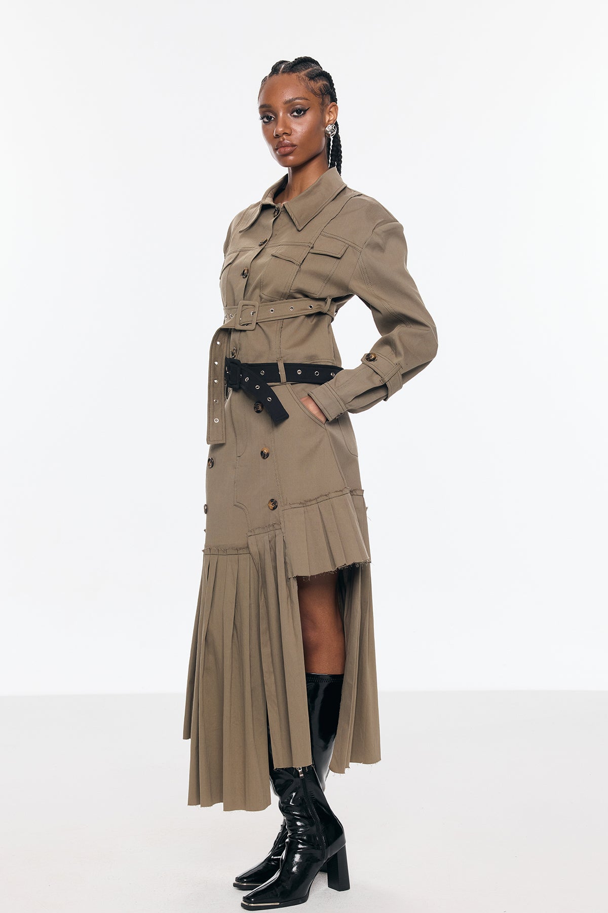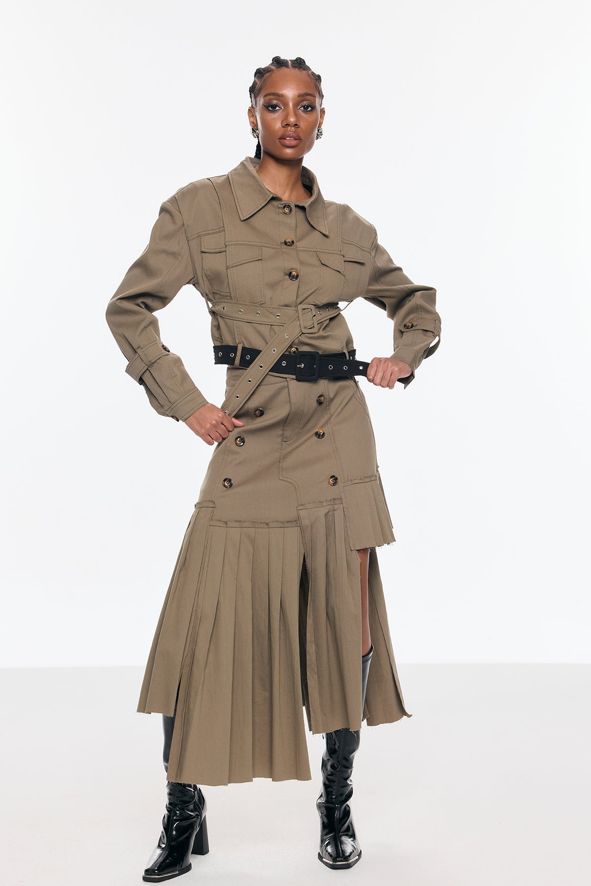 Sleek, sophisticated, and versatile, the Bente Buckle Asymmetric Cargo Skirt Set is the perfect addition to any wardrobe. With its asymmetric design and stylish buckle detail, this set effortlessly combines fashion and functionality. Made with comfortable and durable fabric, it's perfect for everyday wear or for dressing up for a special occasion. Upgrade your style game with this must-have set.