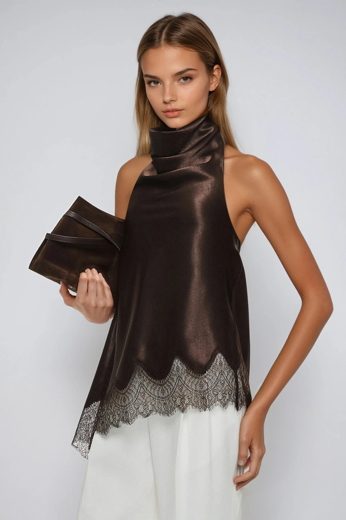 Elevate your evening wardrobe with the Bess Halter Neck Asymmetric Lace Top, a sophisticated piece that seamlessly blends elegance with contemporary design. The delicate lace fabrication offers refined texture, while the halter neckline provides flattering support and a polished silhouette. The asymmetric cut creates visual interest and movement, making this top versatile enough for upscale occasions or styled casually with tailored trousers. Expertly crafted for those who appreciate quality construction and timeless appeal, the Bess delivers understated luxury with every wear.