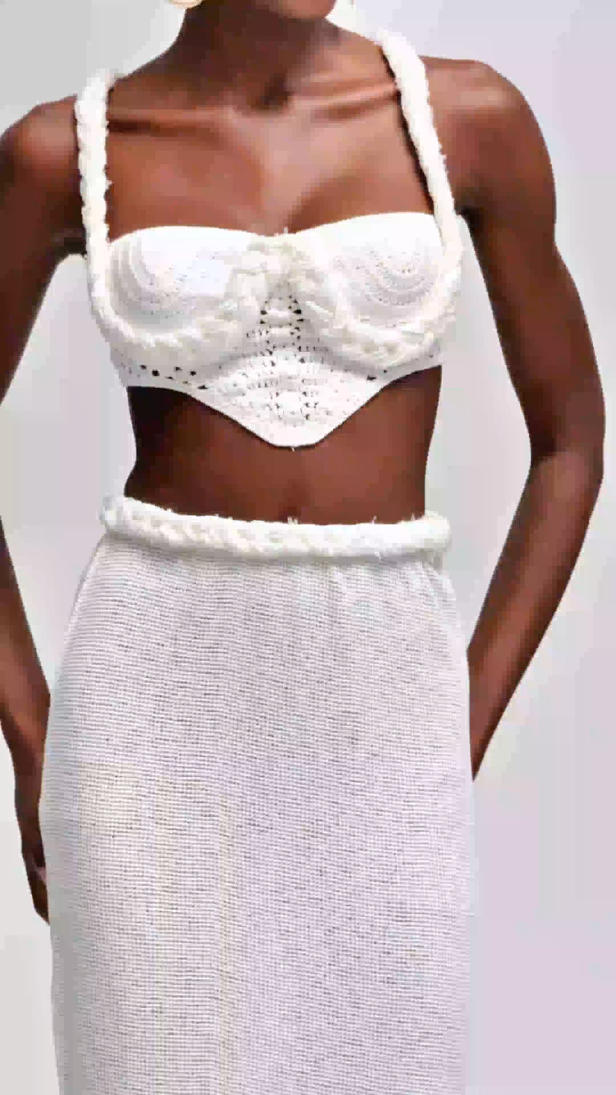 Bogdana Twist Cutout Knit Skirt Set In White
