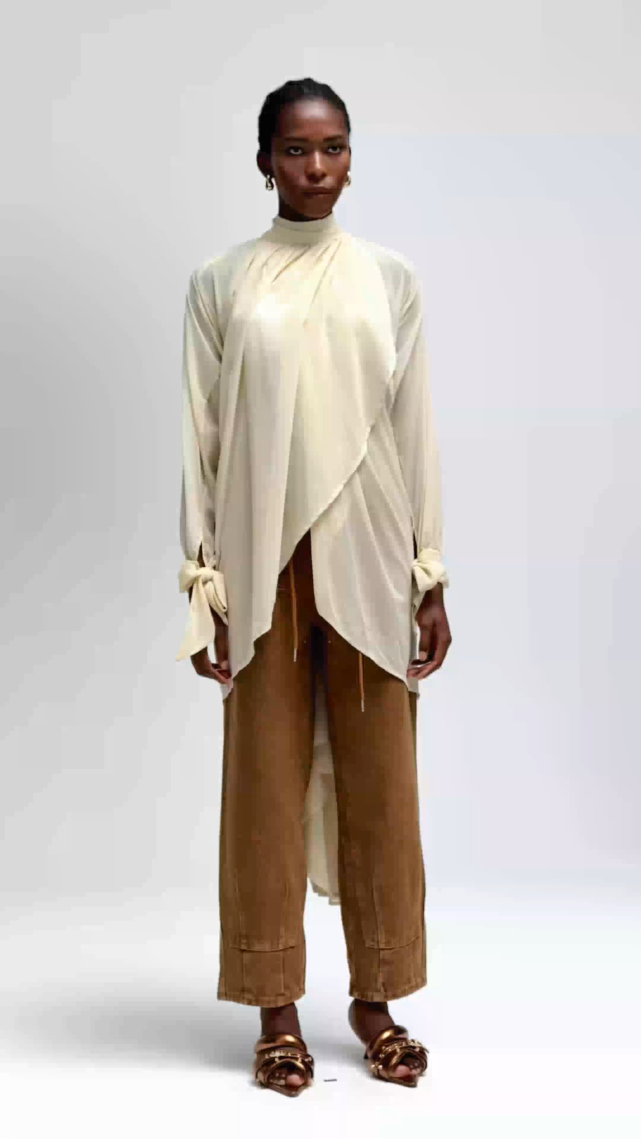 The Bolormaa Lace Up Asymmetric Shirt in Apricot offers a sophisticated blend of modern design and refined craftsmanship. Featuring an asymmetric cut and delicate lace-up detailing, this shirt enhances your silhouette with a unique, contemporary edge. The soft apricot hue adds a subtle warmth, making it versatile for both professional and casual settings. Crafted for those who appreciate expert tailoring and distinctive style, this piece elevates your wardrobe with effortless elegance.