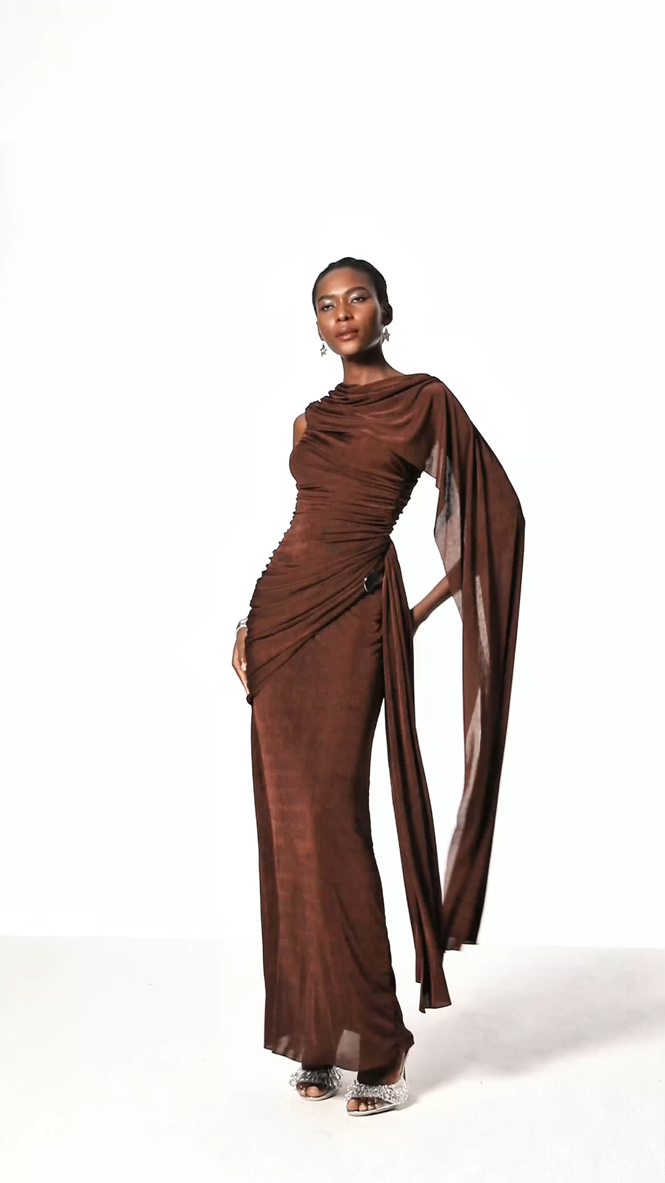 The Brandt Ruch Shawl Maxi Dress in Brown offers a sophisticated silhouette with its flowing maxi length and elegant shawl detail. Crafted for comfort and style, this dress provides a refined look suitable for formal occasions or upscale events. Its rich brown hue adds warmth and versatility, making it a timeless addition to any wardrobe.