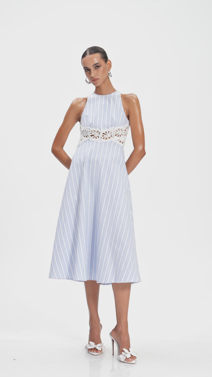 Caeso Sleeveless Stripe Cutout Maxi Dress