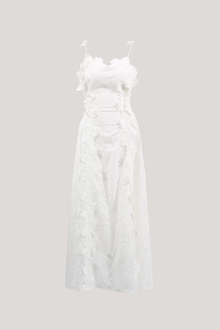 The Camellia Spaghetti Embroidered Maxi Dress combines delicate craftsmanship with elegant design. Featuring fine spaghetti straps and intricate embroidery, this maxi dress offers a refined silhouette ideal for formal occasions or stylish daytime events. Its lightweight fabric ensures comfort and fluid movement, making it a sophisticated choice for those seeking both grace and ease in their wardrobe.