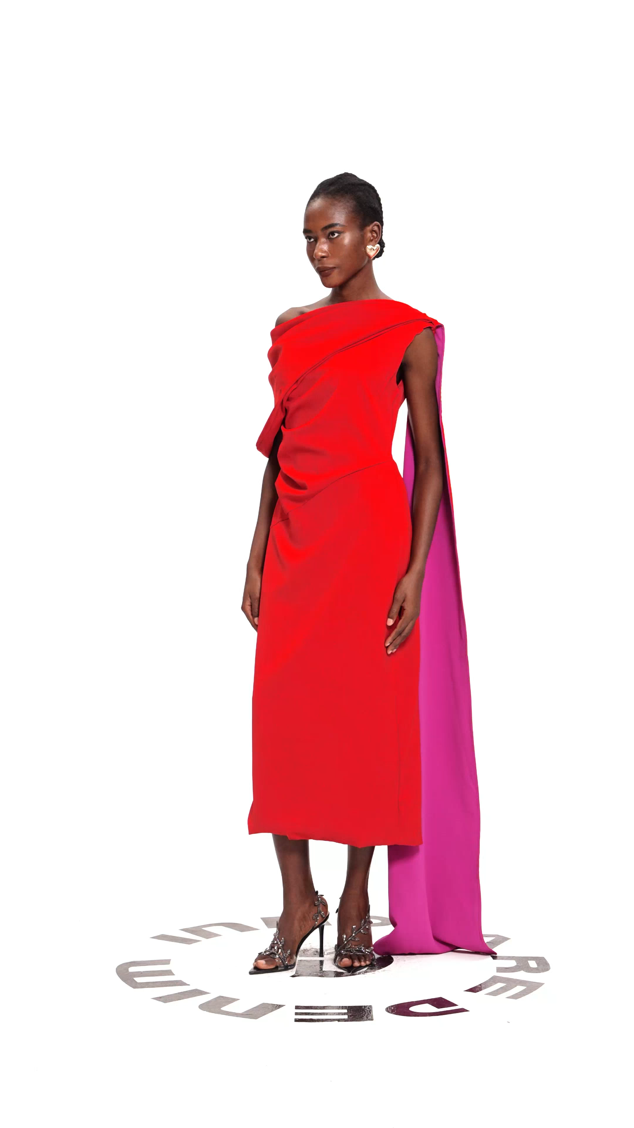 Candidus Shawl Ruch Asymmetric Midi Dress
