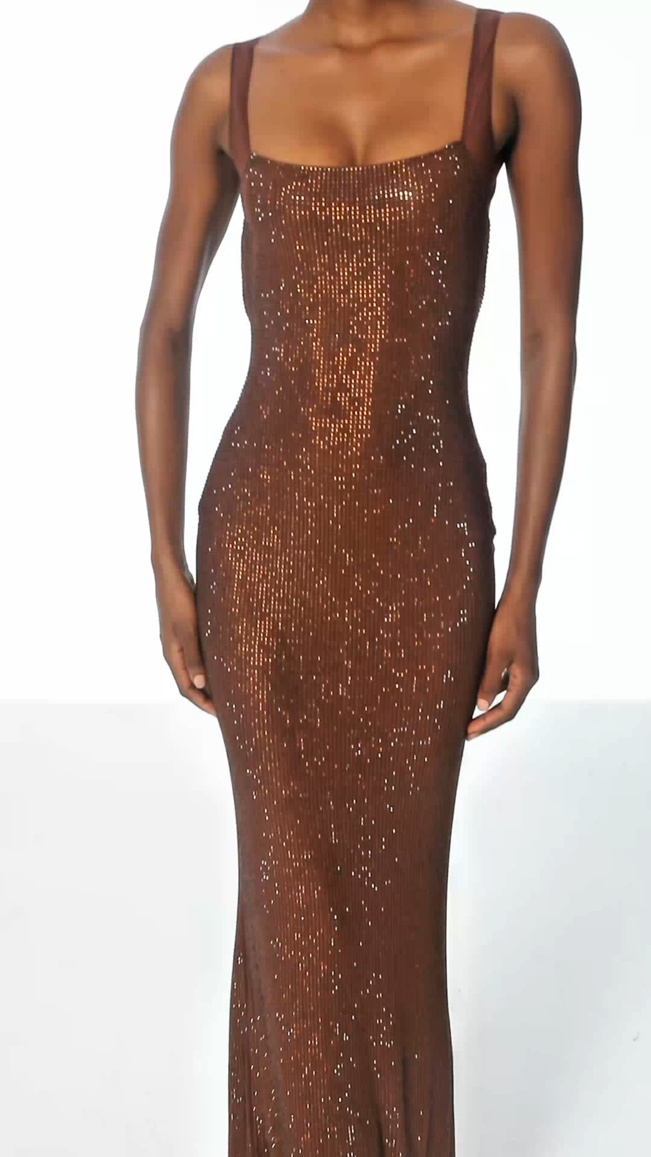 Elevate your evening wardrobe with this striking Caomh Rhinestone Backless Maxi Dress in rich brown. The dramatic open back design creates an alluring silhouette, while intricate rhinestone embellishments catch the light with every movement. Crafted for sophisticated occasions, this floor-length gown combines timeless elegance with contemporary flair. The luxurious brown tone offers versatility for various events, from galas to upscale celebrations. Perfect for those seeking a statement piece that balances glamour with refined style.