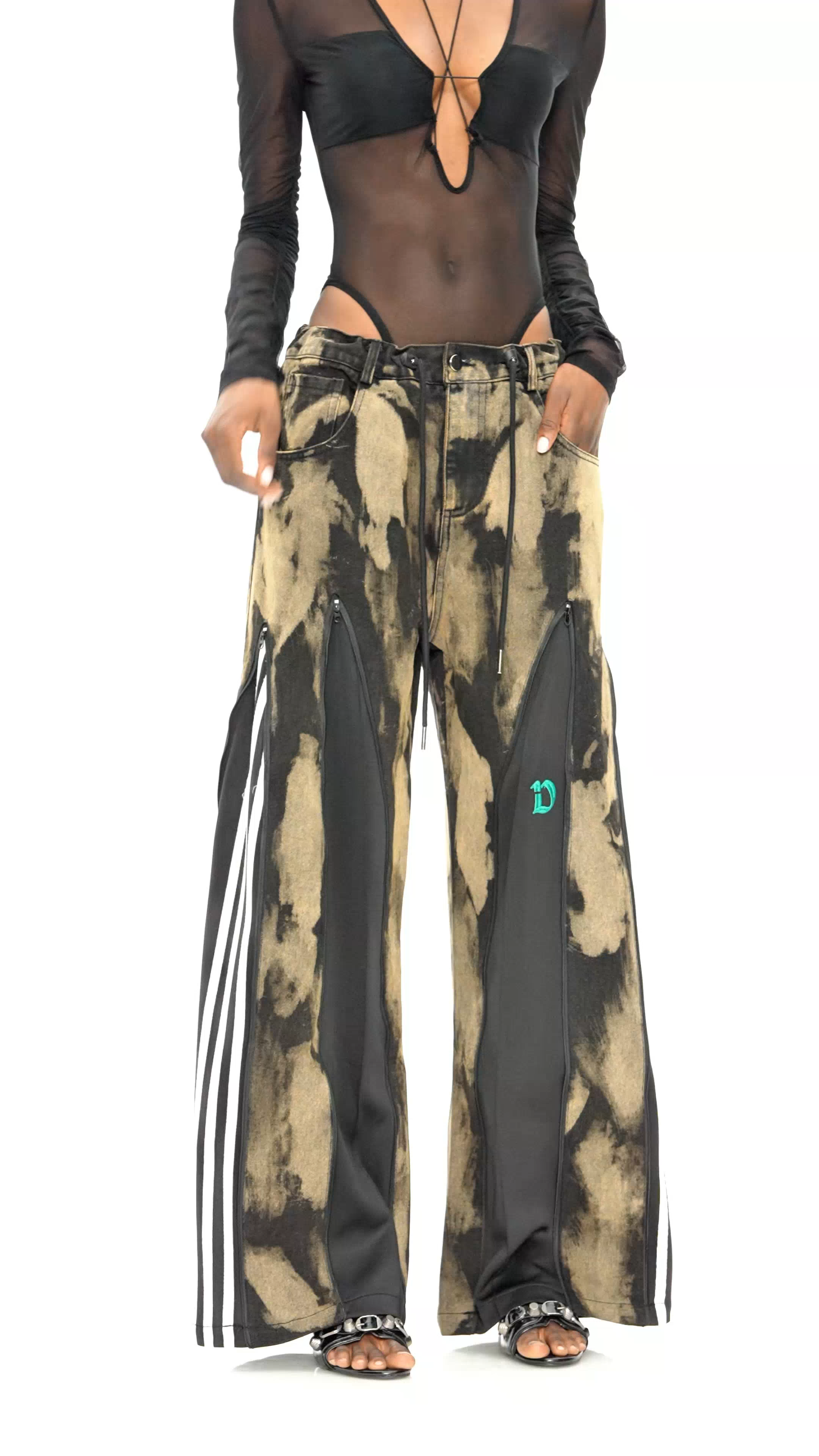 These Caprina Zipper Tie Dye Jeans in black blend bold design with expert tailoring. Crafted with a subtle tie-dye pattern, they offer a unique aesthetic while maintaining versatile wearability. The front zipper detail adds a modern edge, enhancing both style and functionality. Designed for durability and comfort, these jeans deliver a refined fit ideal for fashion-forward individuals seeking statement denim with a sophisticated finish.