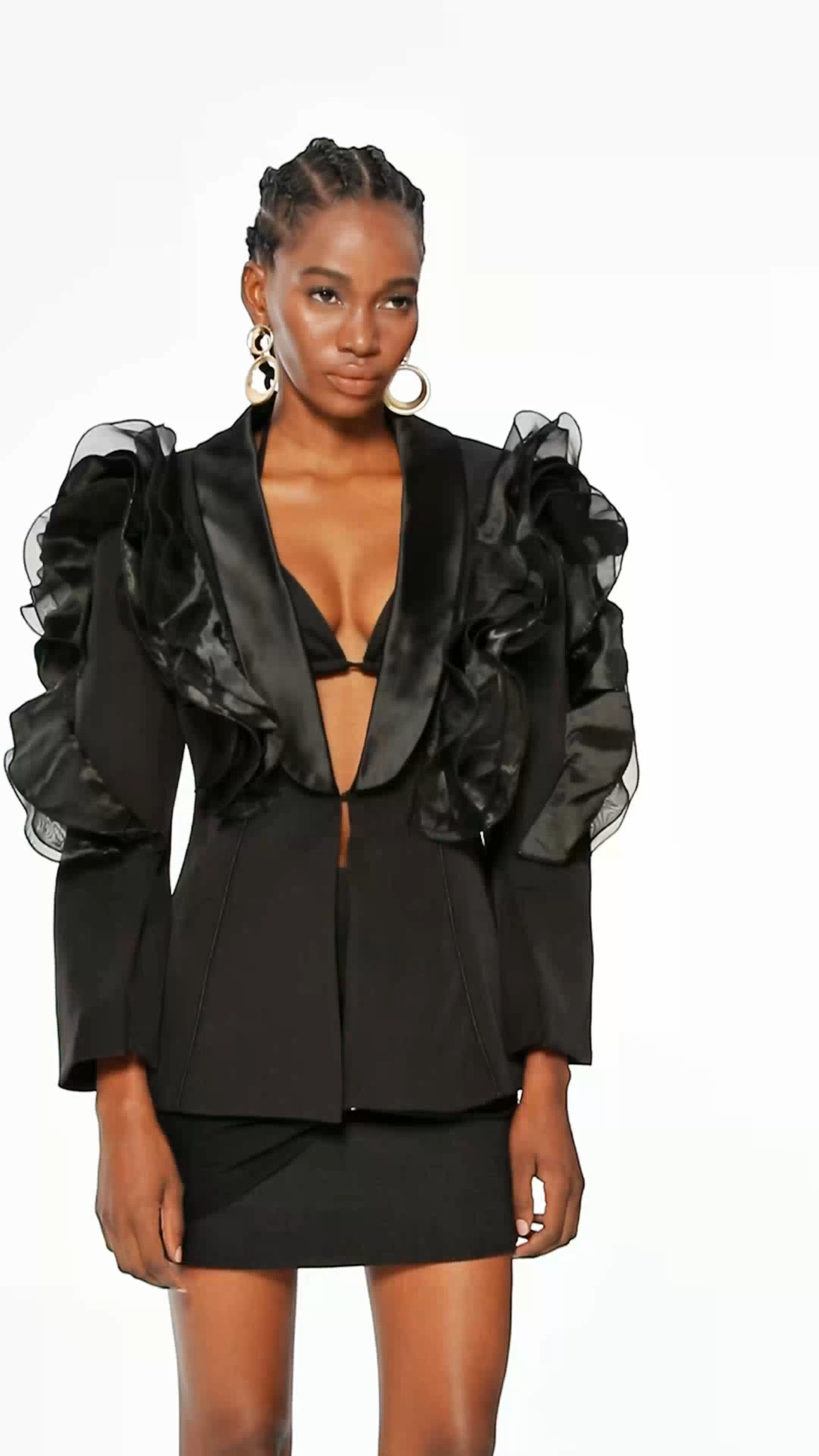 Elevate your wardrobe with the Carlie Ruffle Asymmetric Blazer, expertly designed to combine modern tailoring with feminine details. Its asymmetric cut adds a contemporary edge, while delicate ruffle accents introduce subtle sophistication. Crafted for a flattering fit, this blazer seamlessly transitions from professional settings to stylish evening occasions, offering versatility without compromising on elegance.