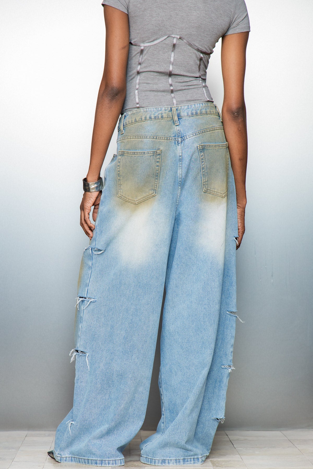 Cary Hayley Torn Barrel Jeans combine contemporary style with a relaxed fit, featuring deliberate distressed details for an edgy, lived-in look. Crafted with durable denim, these jeans offer both comfort and longevity. The wide leg silhouette enhances mobility and adds a fashion-forward statement to any wardrobe, making them ideal for those seeking a blend of trend and practicality.