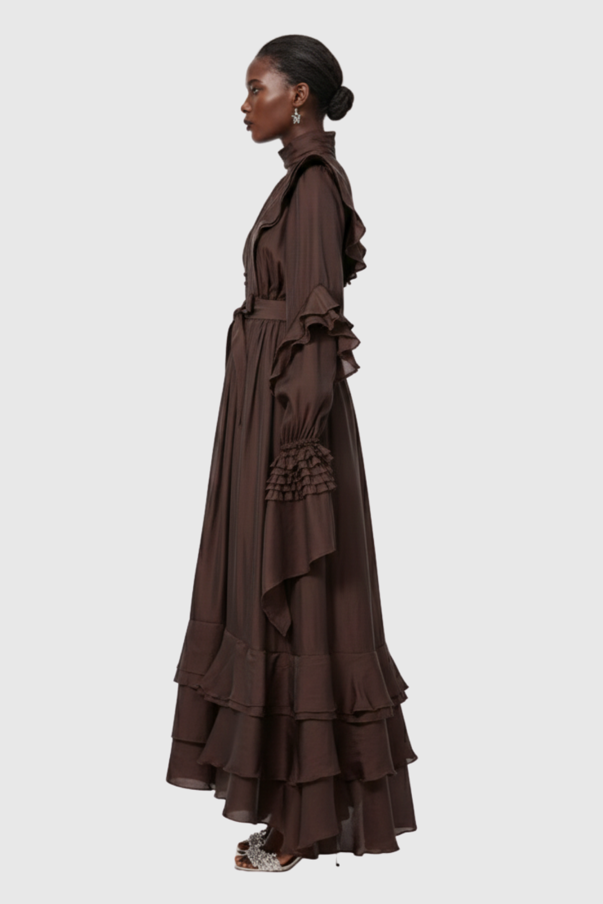 Celsus Ruffle Cutout Maxi Dress Elevate your evening wardrobe with this sophisticated maxi dress, featuring strategically placed cutout details that add contemporary flair to a timeless silhouette. The delicate ruffle accents create movement and dimension, while the floor-length design offers elegant coverage. Crafted for refined occasions, this piece balances modern design elements with classic proportions, making it an essential addition for those who appreciate understated luxury and thoughtful construction.