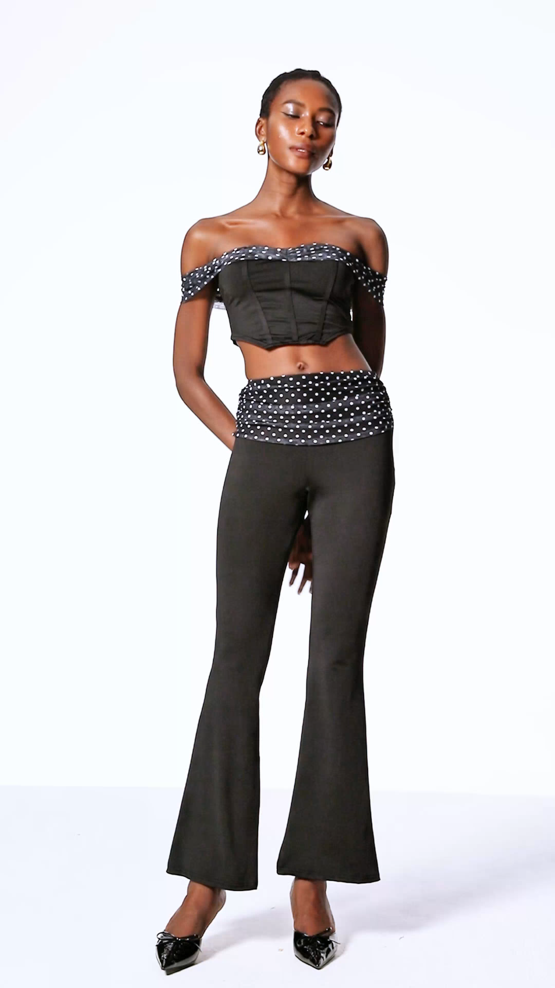 The Cephas Dot Ruch Off Shoulder Pants Set combines sophisticated design with modern comfort. Featuring an off-shoulder top with delicate ruching and coordinating pants, this set offers a flattering silhouette ideal for both casual and formal occasions. Crafted to provide ease of movement while maintaining a polished look, it is a versatile addition to any wardrobe seeking refined style with expert tailoring.