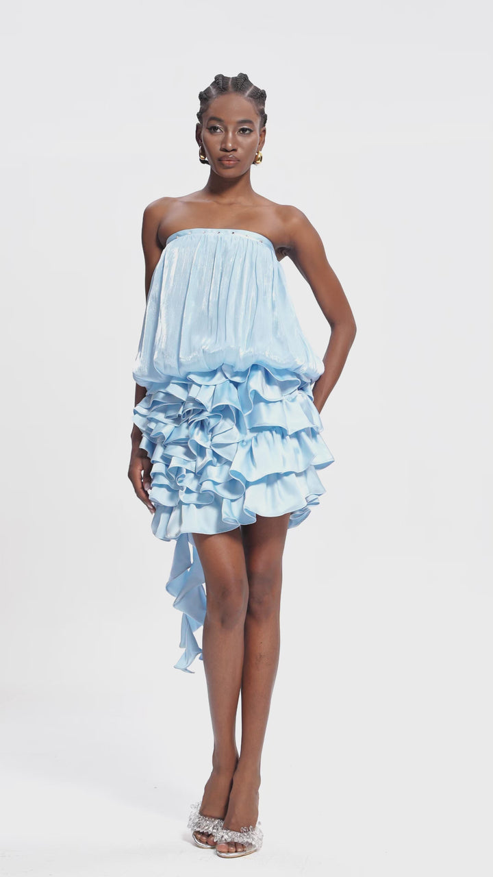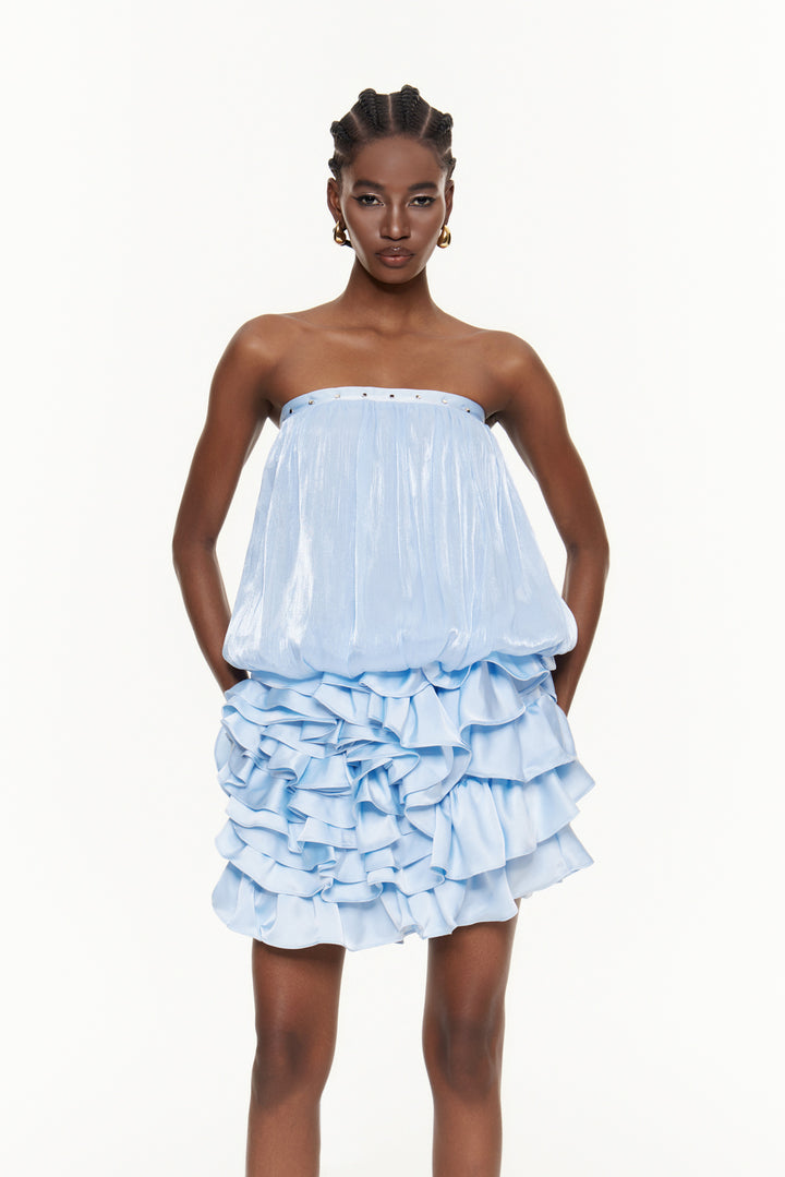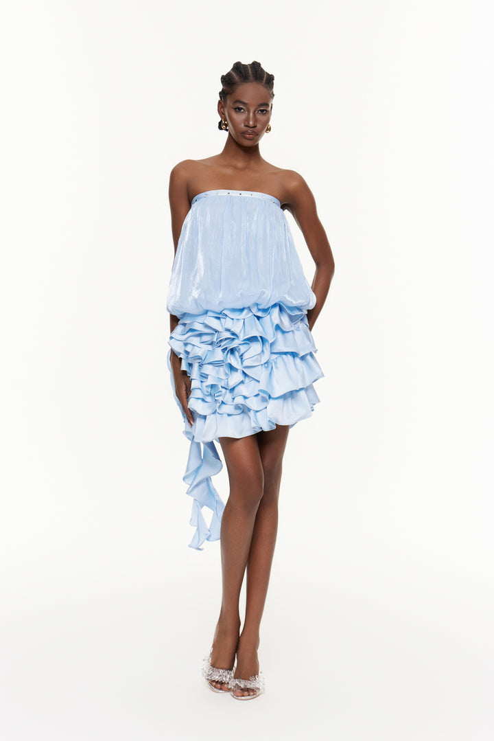 Cerridwyn Strapless Ruffle Mini Dress In Blue