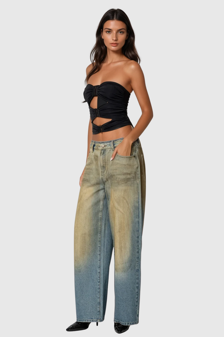 The Cezar Cutout Strapless Top offers a sleek, modern silhouette with its strapless design and strategically placed cutouts. Crafted for a confident fit, it enhances your natural shape while providing a bold, fashion-forward statement. Ideal for pairing with high-waisted bottoms, this top balances elegance and edge for versatile styling in both casual and evening settings.