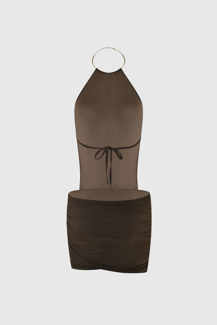 Cezara Halter Neck Backless Ruch Mini Dress