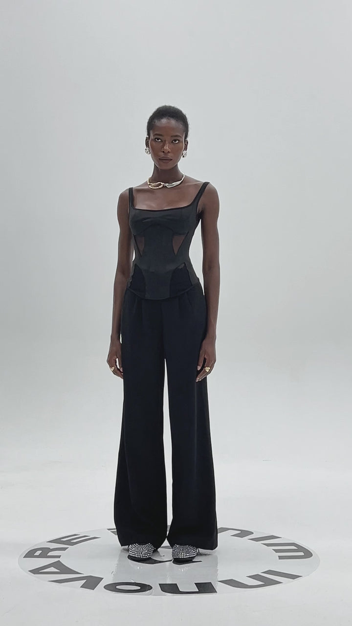 Chana Corset Mesh See Through Top In Black