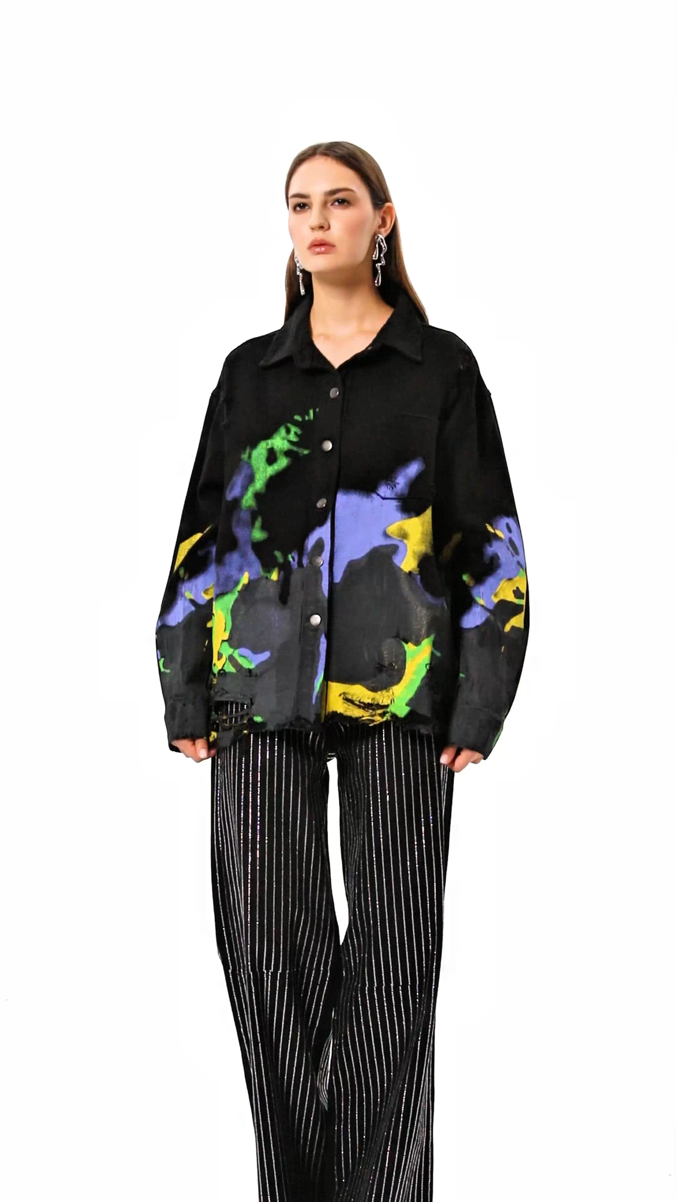 The Chastity Print Ripped Denim Jacket offers a masterful blend of distressed aesthetics and artistic print detailing. Made from high-quality denim, it ensures durability while maintaining a comfortable fit. The intentional rips and carefully placed prints give this jacket a distinctive, contemporary edge perfect for those seeking a sophisticated yet rebellious look. Ideal for layering, it elevates casual ensembles with refined craftsmanship and bold style.