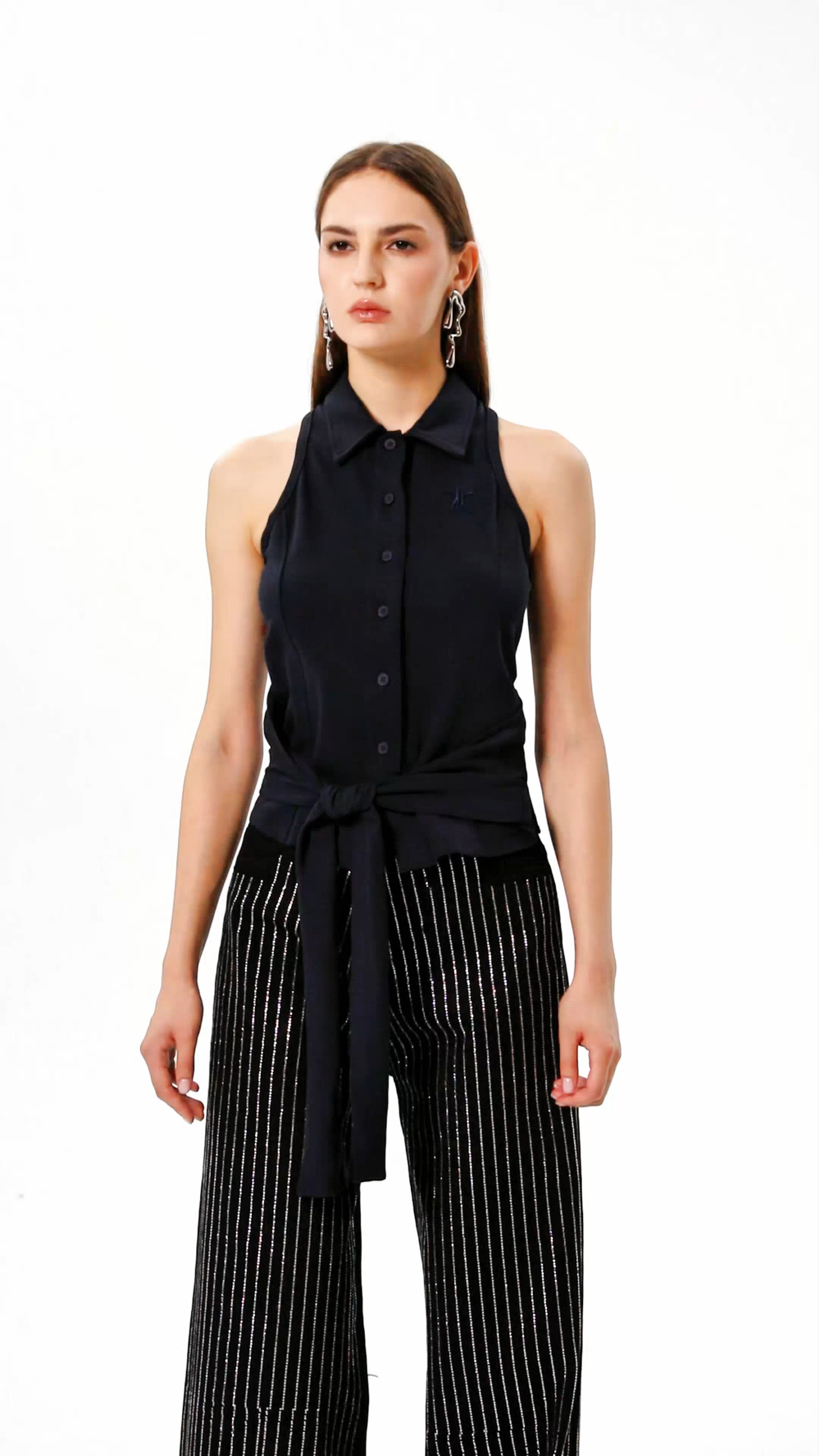 The Cheiron Sleeveless Tie Up Top offers a refined silhouette with its sleeveless design and adjustable tie closure, allowing a customizable fit for enhanced comfort. Crafted to provide breathable wear, it pairs effortlessly with both casual and more polished looks, making it a versatile addition to your wardrobe. Its clean lines and minimalist style emphasize a modern aesthetic while ensuring ease of movement throughout the day.